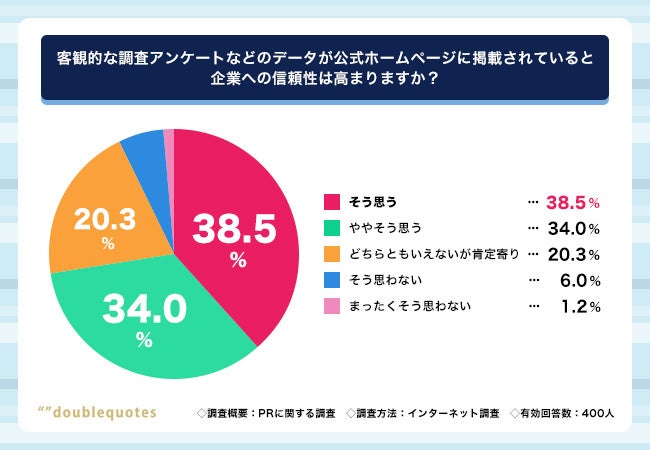 そこで今回「PRの日」にちなんで、『doublequotes』(https://www.doublequotationmarks.com/)を運営するアウトオブザボックス株式会社(本社所在地:東京都中央区、代表取締役:水本年成)は、普段インターネットをよく利用している全国20~60代の男女400名を対象に、PRに関する調査を実施しました。