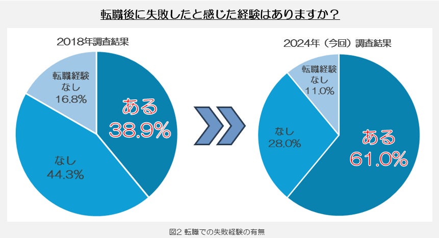 そこで今回の調査では、転職での失敗経験やその原因、またそれらを2018年調査時の結果と比較して分かったことを明らかにしました。