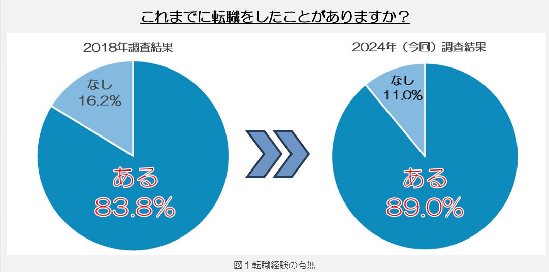 ①これまで転職をしたことがある人は全体の約90%、 転職経験者の割合は2018年と大きな差はなし