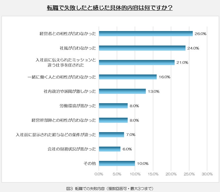 ③転職での失敗内容は、「経営者との相性が合わなかった」が最多(26.0%)