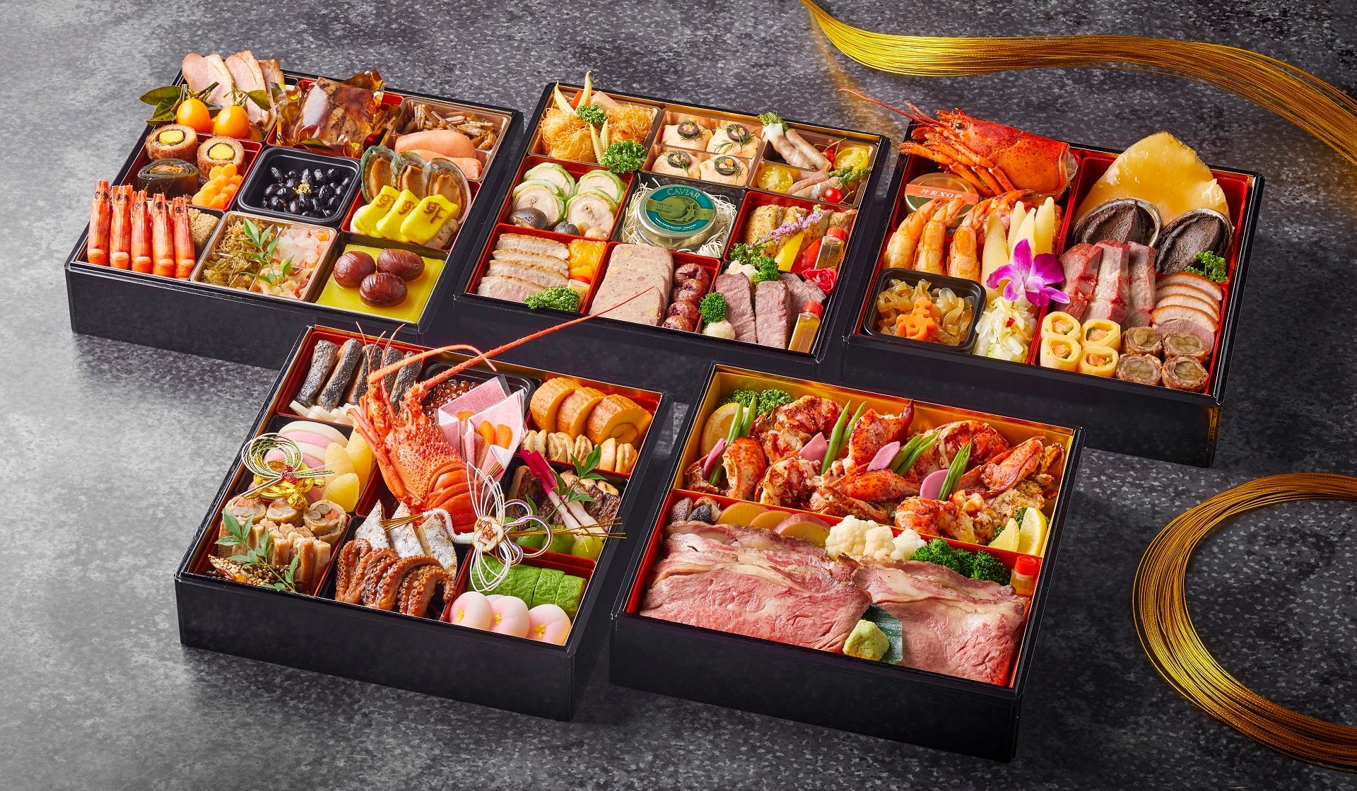 ・プレミアム五段重おせち 日本料理二段・西洋料理二段・中国料理一段 5~6名さま ¥150,000