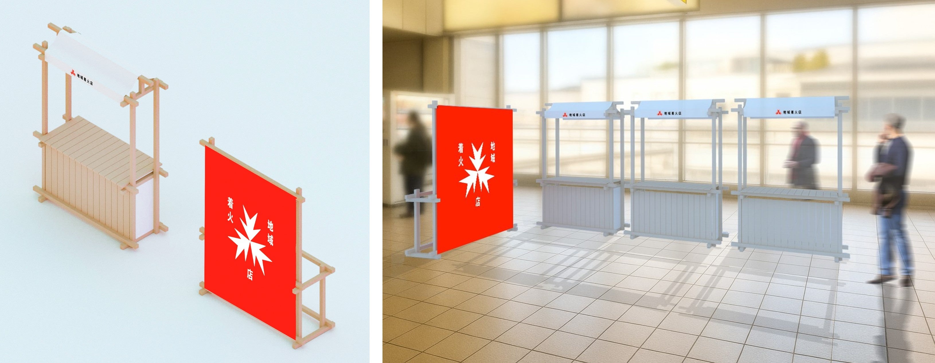 ※地域着火店の什器は神奈川県南足柄市の木材を活用し、南足柄市の地域活動に取り組む非営利株式会社BUNDにて製作しています。