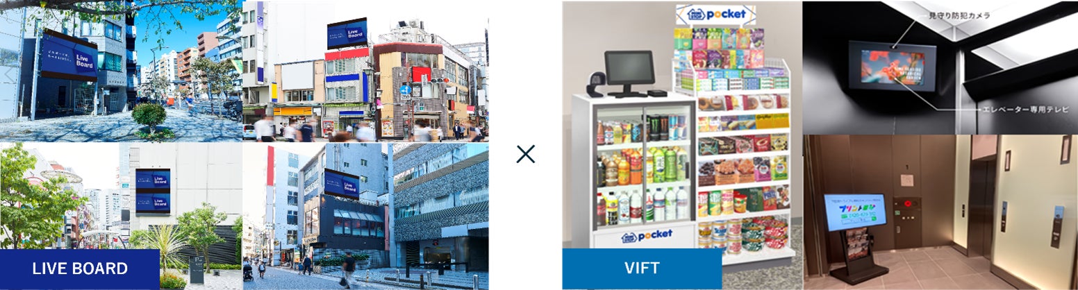 LIVE BOARD Networkに接続している主要なOOHスクリーンと、独自に保有するメディアの中から、VIFTが設置されている建物周辺に位置するメディアを厳選し、効果的に広告を配信する特別プランです。