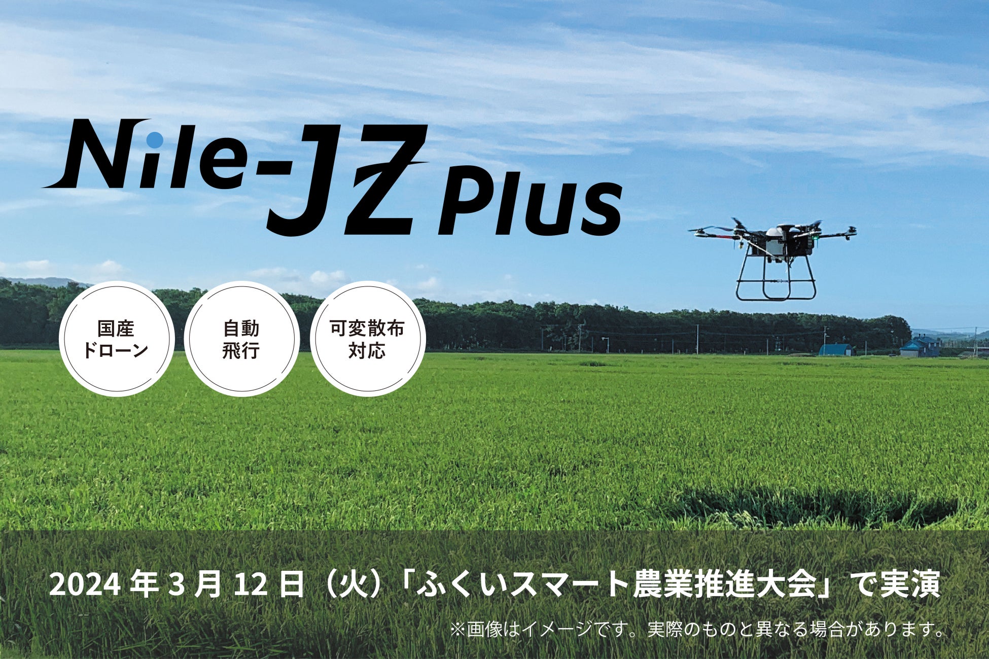 「Nile-JZ」シリーズは、ハイスペックドローン開発コンソーシアムで開発した機体をベースに、ナイルワークス独自の自動飛行技術を搭載しています。フルオート(自動飛行運転)に特化しているからこそ、事前準備のお手軽さやストレスフリーな飛行が特長です。「ふくいスマート農業推進大会」では、飛行実演をいたしますので、ぜひご来場ください。
