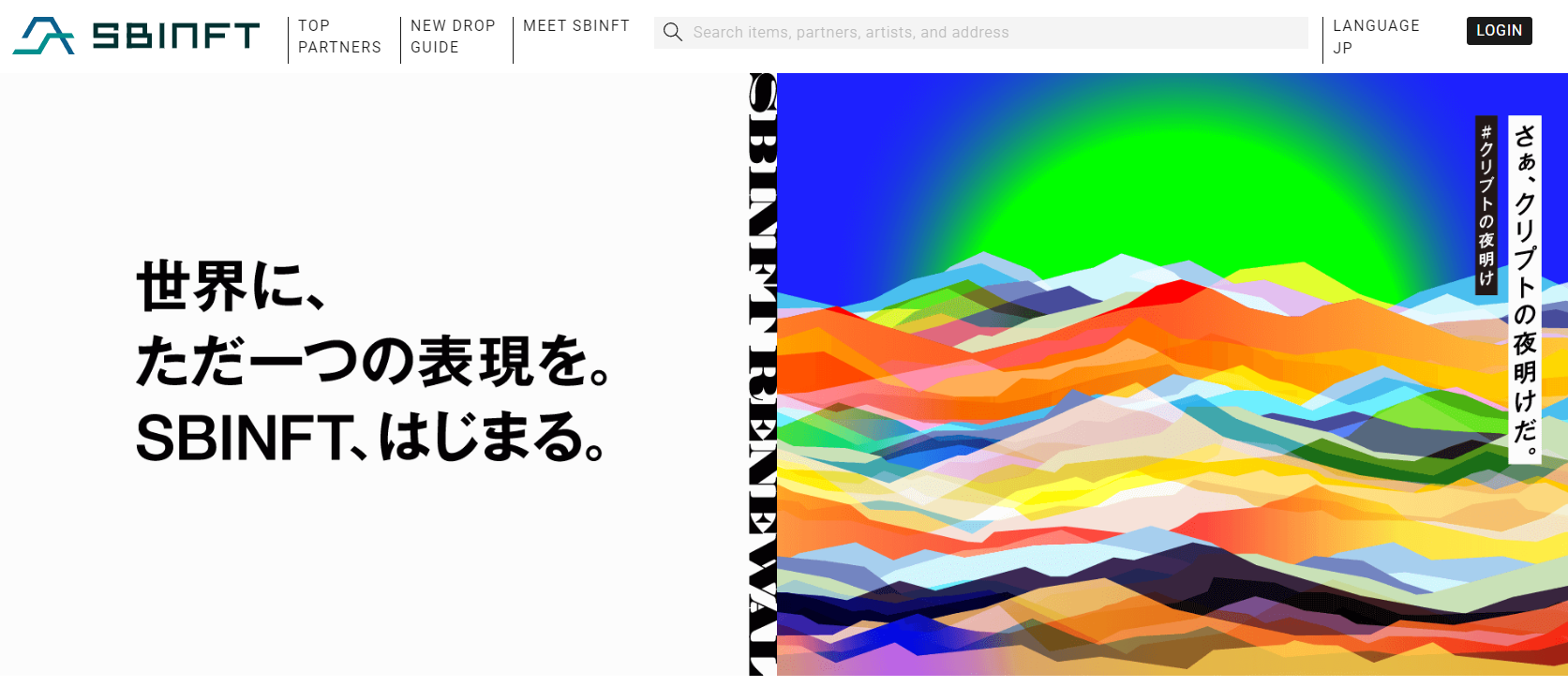 SBINFT Marketは日本初のクリプトアーティスト登録制によるNFTマーケットプレイスです。
