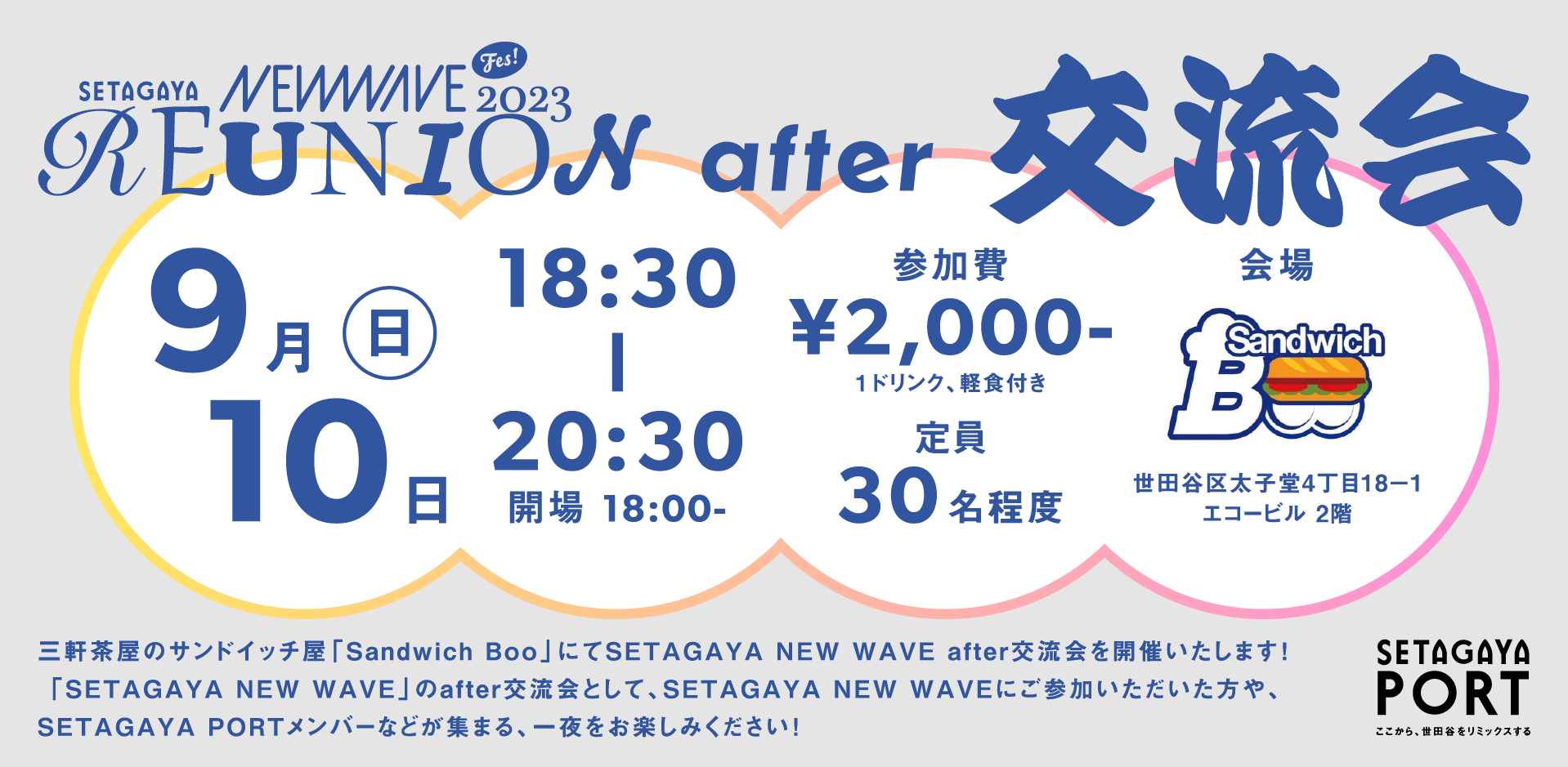 三軒茶屋のサンドイッチ屋「Sandwich Boo」にてSETAGAYA NEW WAVE after交流会を開催いたします!