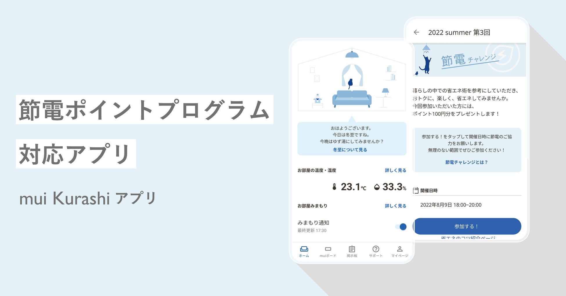 (株) ギフティと連携し「節電ポイント」プログラム対応アプリ「mui Kurashiアプリ」の提供を開始