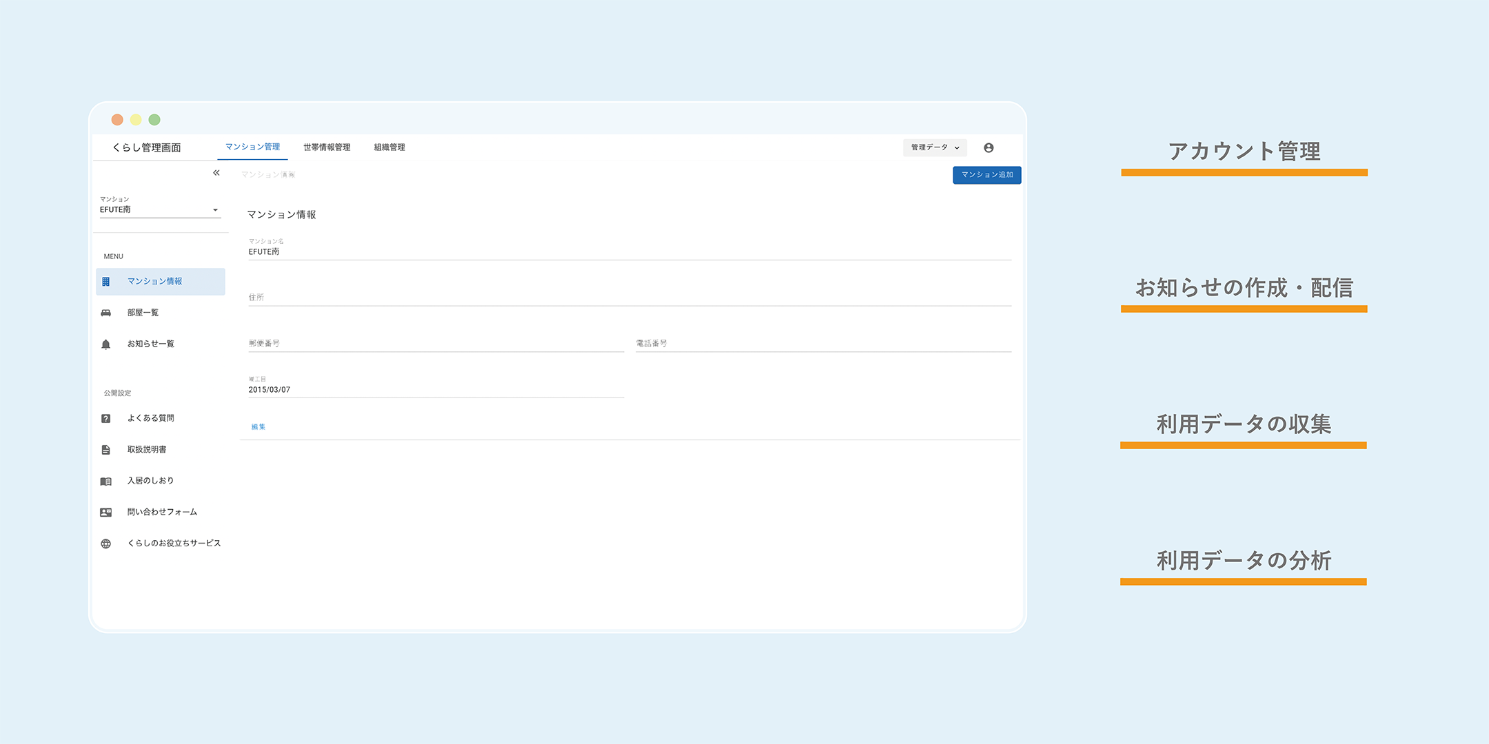 ・管理画面・BIツールを通じてサービス利用状況の把握など利用者の暮らしデータを取得することができます。