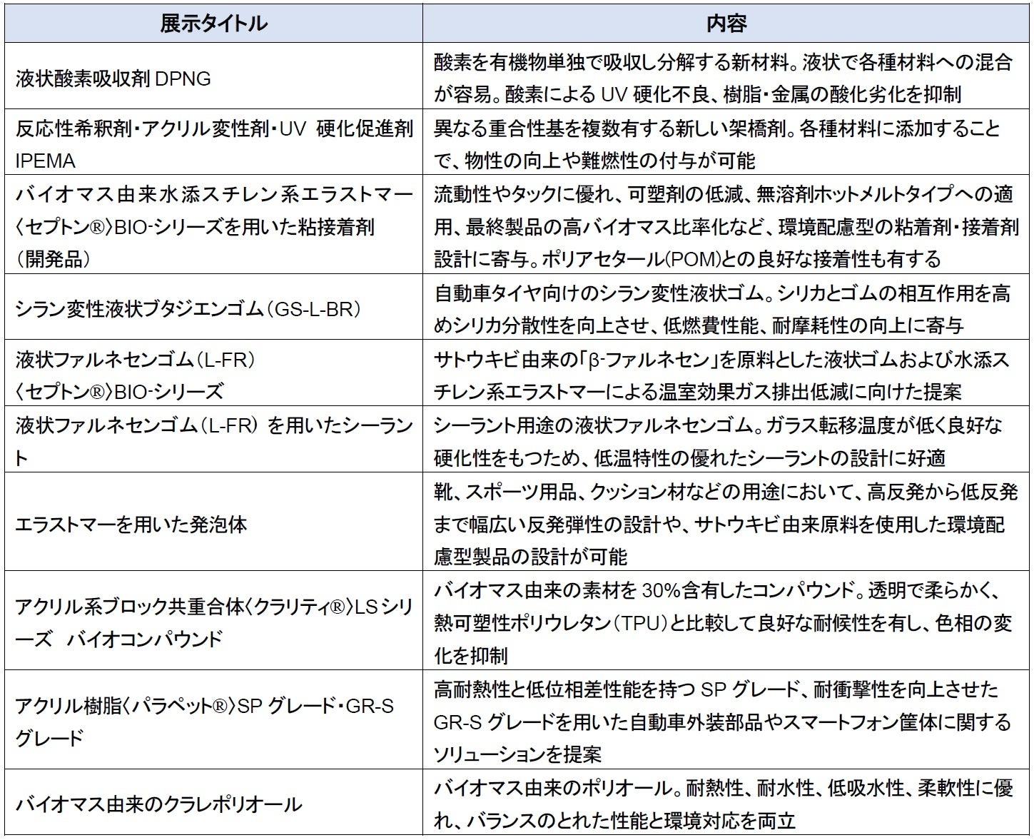~独自の技術から生まれた開発品を含む多様な高機能材料10点を紹介~