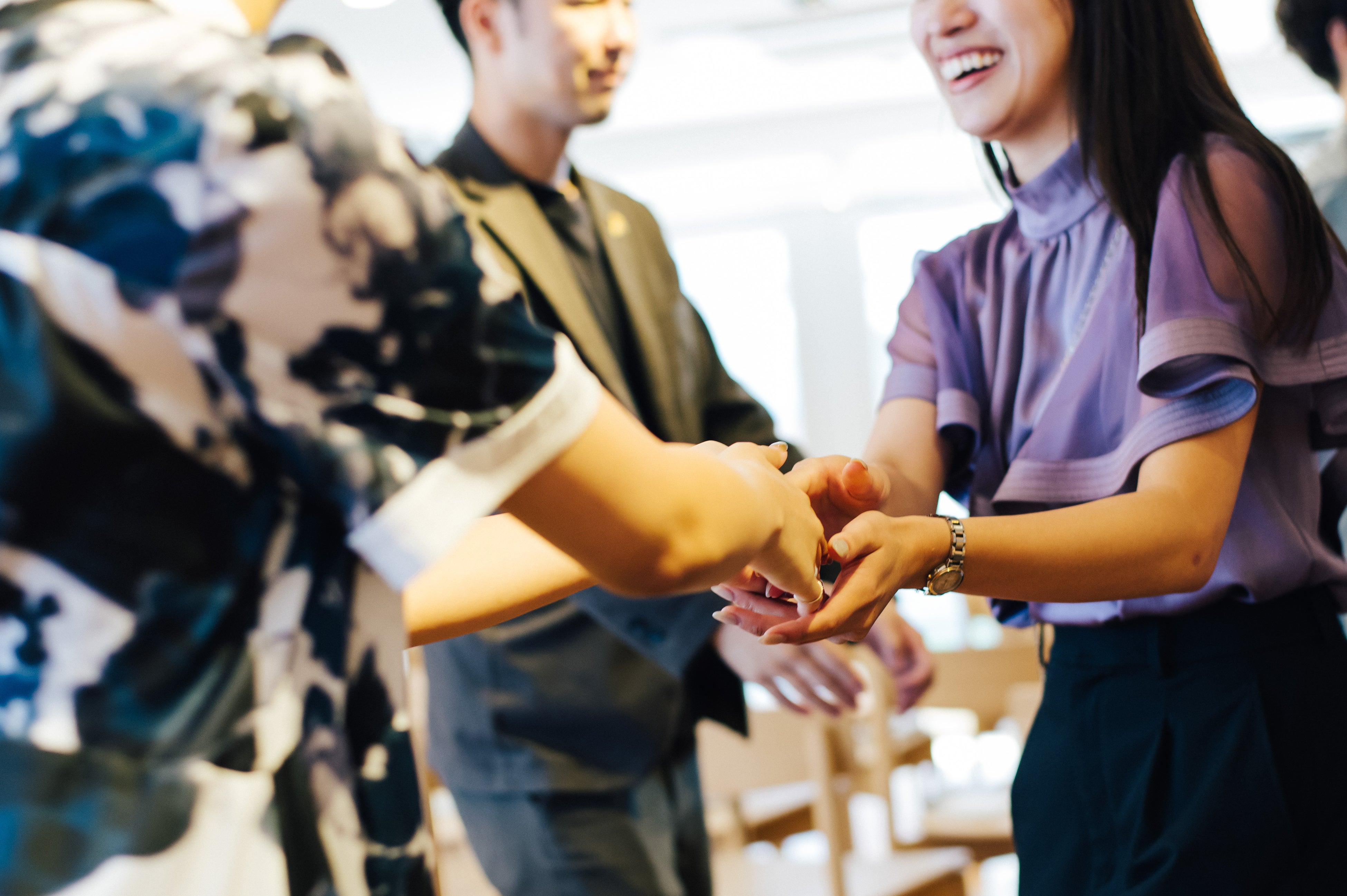 結婚式をはじめとした事業を通して、お客さまに愛を感じる機会を届けるためには、まず社員が自分自身を愛すること、他者を一人の人として受け入れていることが重要だと考え、組織づくりに反映させています。