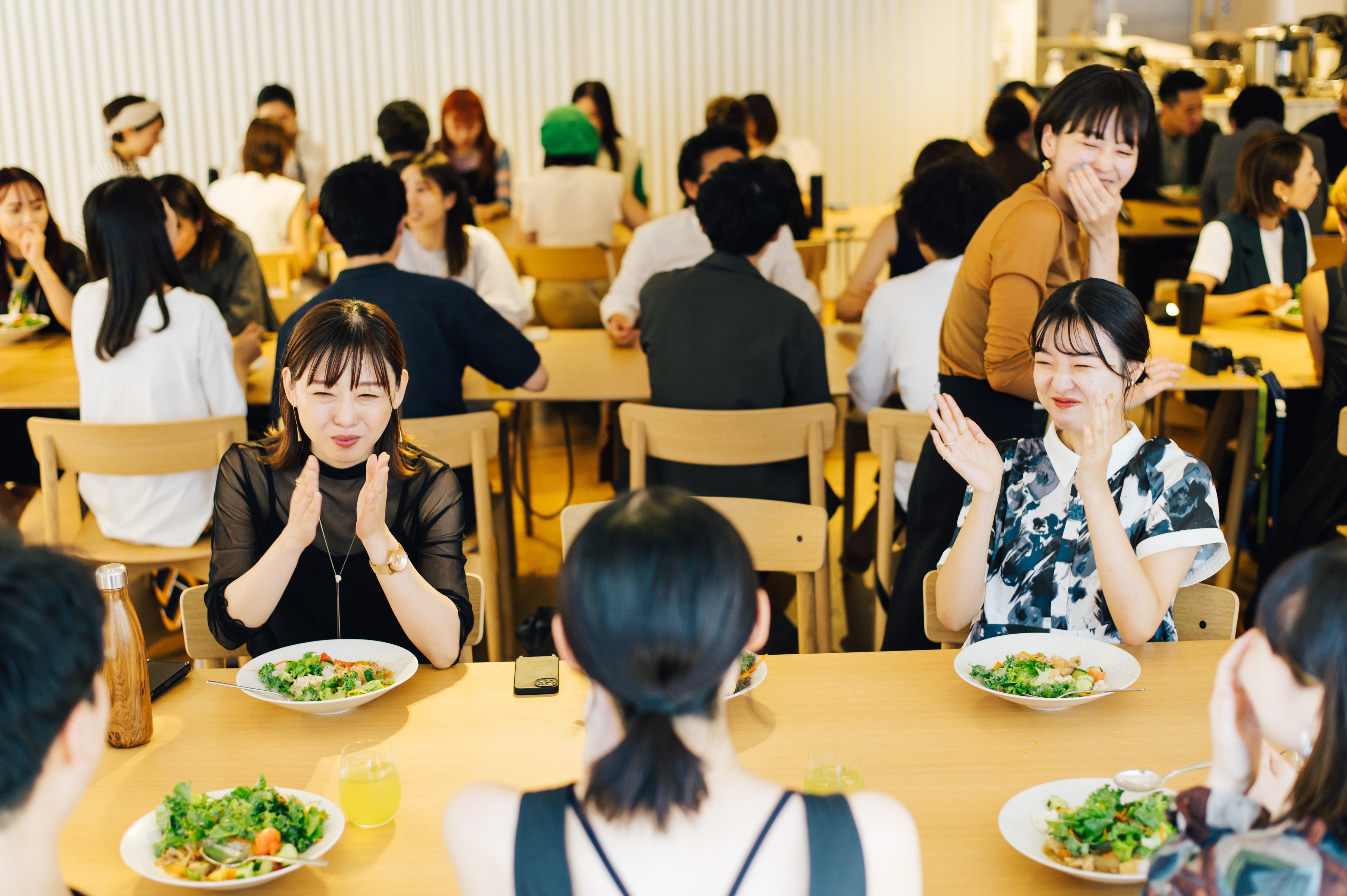 この場では、社員だけではなくお客さまやコミュニティメンバーなど日常的に関わってくださっている社外の方もお招きし、食事の作用を生かしながら、社内外の人と精神的な繋がりを持つことに取り組んでいます。