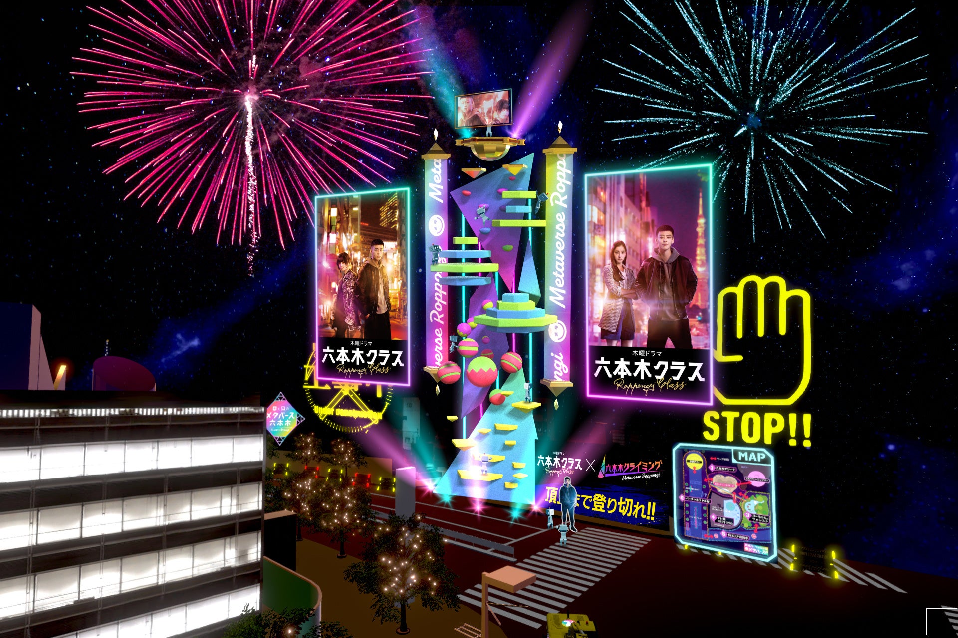 まずは新アトラクション、毎週木曜よる9時から好評放送中のドラマ『六本木クラス』とのコラボ「六本木クライミングウォール」です。メタバース六本木の街に、ドラマの超巨大ポスターと共に「超巨大な壁」が出現!!壁の頂上部分では『六本木クラス』メインキャストの竹内涼真、新木優子、平手友梨奈の3人からの「ここでしか見られないスペシャルメッセージ動画」を公開しています!みなさんはアバターとなって、その「超巨大な壁」を登っていきます。見事頂上まで辿り着き、スペシャル動画を見ることが出来るか!?ぜひ挑戦してみてください!