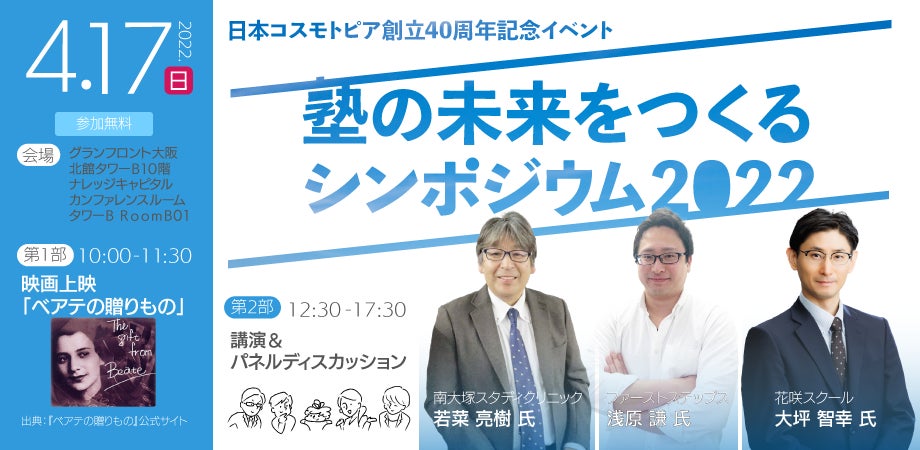日本コスモトピア創立40周年記念「塾の未来をつくるシンポジウム 2022」2022年4月17日(日)大阪で開催