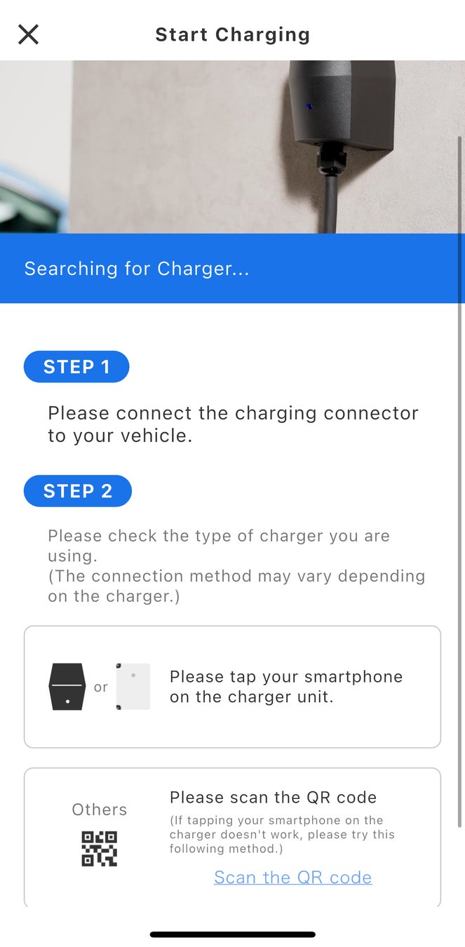 誰でもカンタン操作:アプリ画面が母国語で表示されるので、チェックイン直後のホテルロビーや観光地の駐車場でも、その場でスムーズに充電開始。