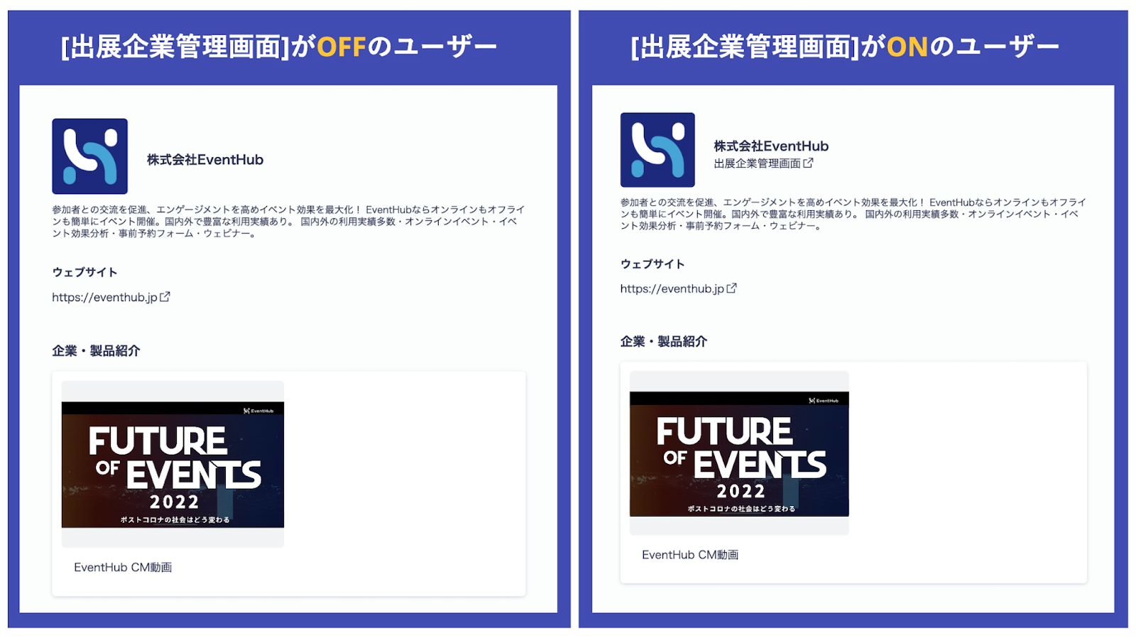 株式会社EventHub(本社:東京都千代田区、代表取締役社長:山本理恵)は、提供するイベントプラットフォーム「EventHub(イベントハブ)」上で、新たに出展企業管理画面の機能の提供を開始したことをお知らせいたします。
