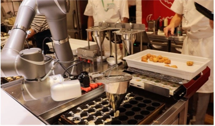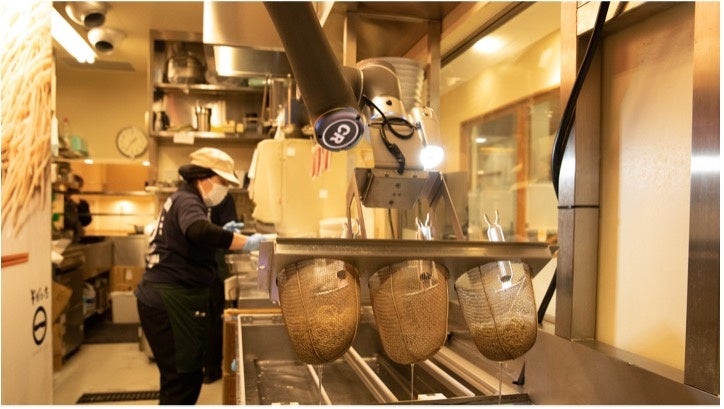 当社は「高度なロボット制御の技術」と「ディープラーニングを活用したセンシングと学習技術」の組み合わせでロボットを知能化し、「働く人と食事をする人の両方に喜びを提供するロボットサービス」の開発を進めてまいりました。今までに、「たこ焼きロボット」、「ソフトクリームロボット」、「そばロボット」、「フライドポテトロボット」「ゆで麺機省エネシステム」などといった、食材を扱うロボットシステムを開発し、実店舗で導入実績を持つ唯一の企業として、飲食業界における人手不足や低生産性、過酷な労働条件といった課題を解決すべく取り組んでまいりました。