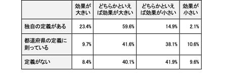 2につづいて、移住者に関する独自の定義の有無と、移住促進施策の効果をめぐる担当者の認識の関連性を分析すると、独自の定義がある自治体の担当者は、都道府県の定義に則っている自治体や、定義がない自治体の担当者と比較して、移住促進施策の効果が大きいと認識していることが明らかになりました。