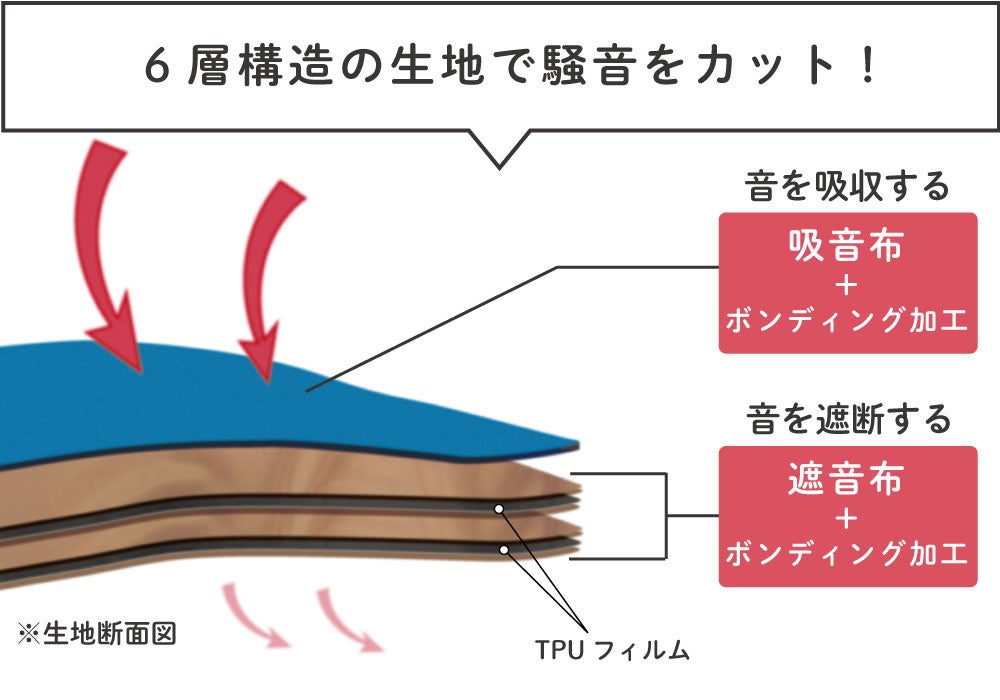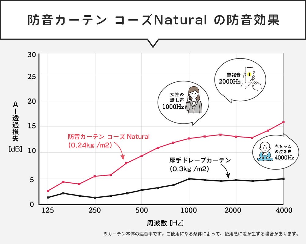 そのため、防音効果を高く保ちつつ、一般的な遮音カーテンより軽量化することが出来ました。