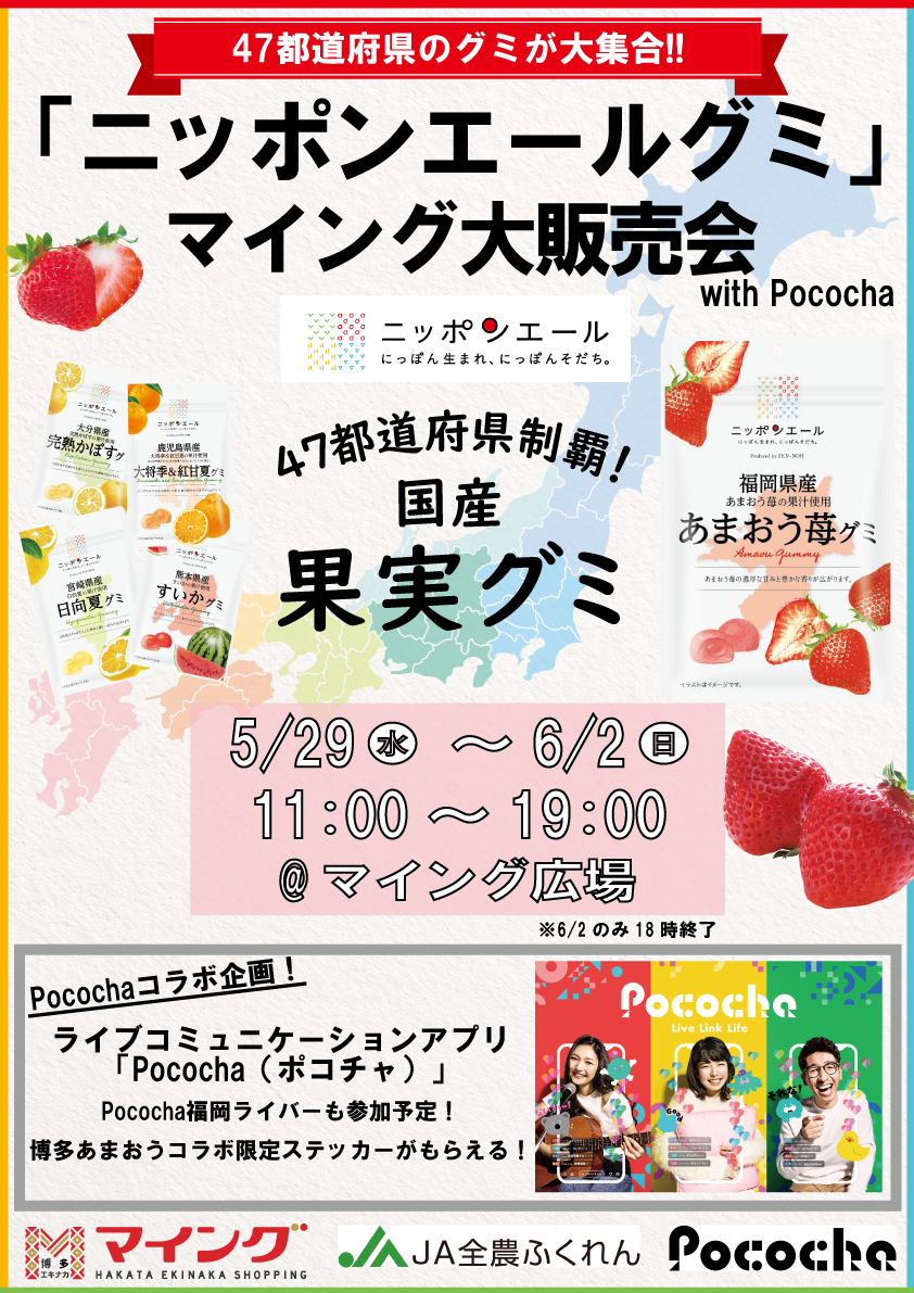 【5/29~6/2】47都道府県のグミが大集合!「ニッポンエールグミ マイング大販売会 with Pococha」 JA全農ふくれん × 博多駅マイング × DeNAのコラボ企画!