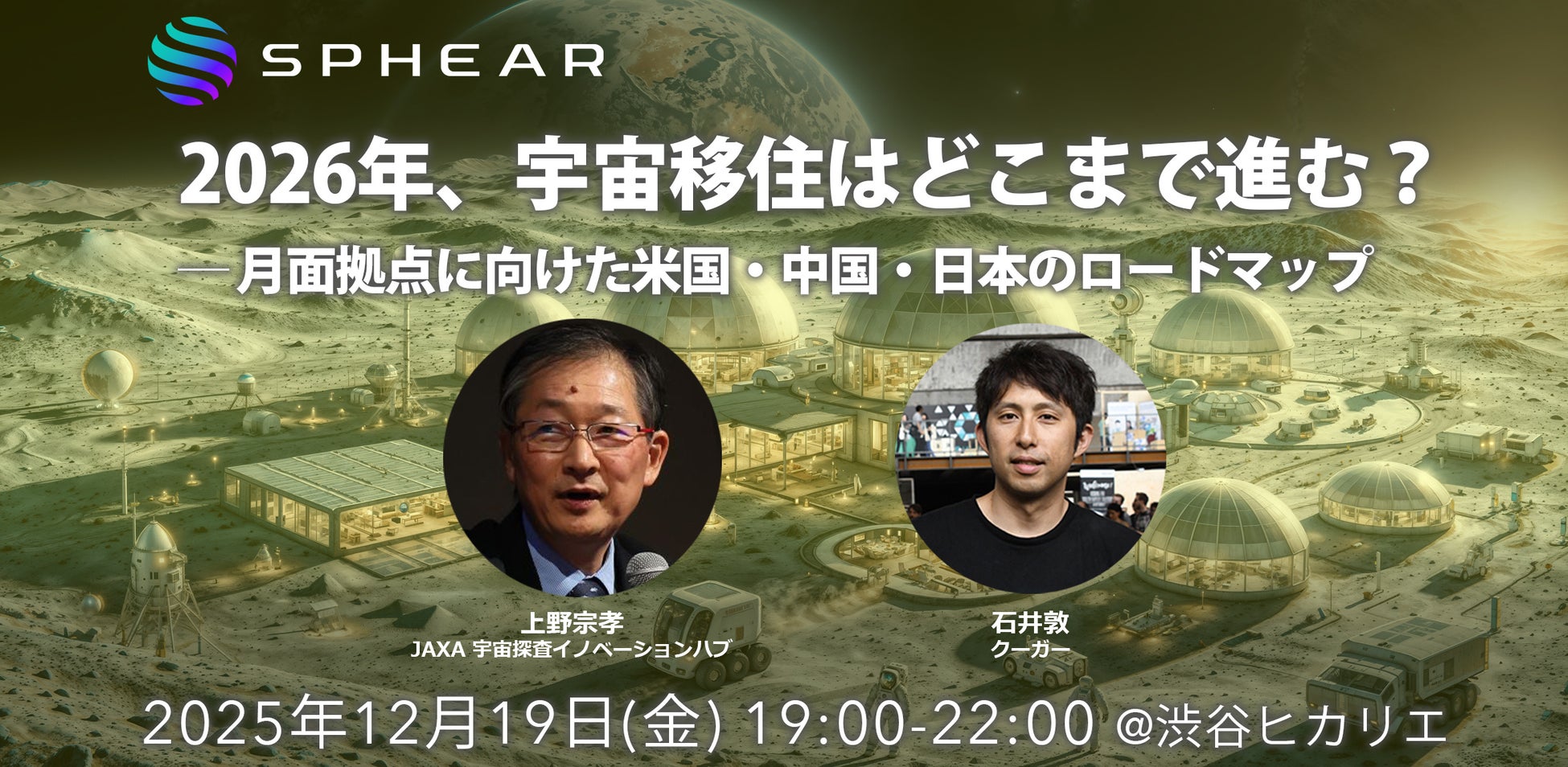 2026年、宇宙移住はどこまで進む?──月面拠点に向けた米国・中国・日本のロードマップ「Sphear #5」、12月19日開催