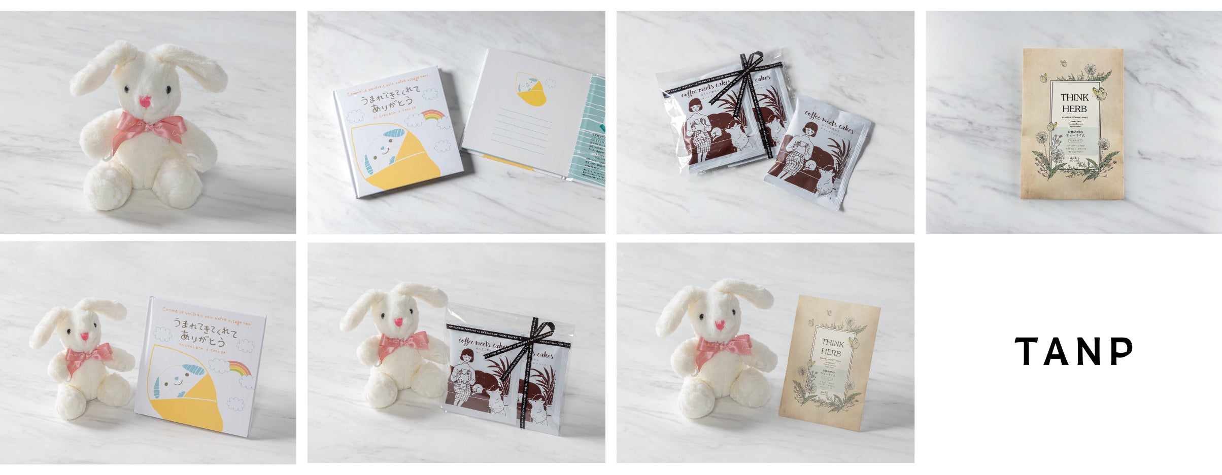 TANPではギフトに彩りを添える様々なオプションを提供しており、特に「コーヒー・紅茶」といった飲み物や、「ぬいぐるみ・マスコット」といった愛らしいオプションは以前からご好評をいただいておりました。ご出産というお身体に繊細なシーンでもお渡ししやすいことや、お子様にも喜んでいただけることを軸に提供が開始された今回のオプションは、「体験」に拘りのあるTANPならではのオリジナルオプションです。