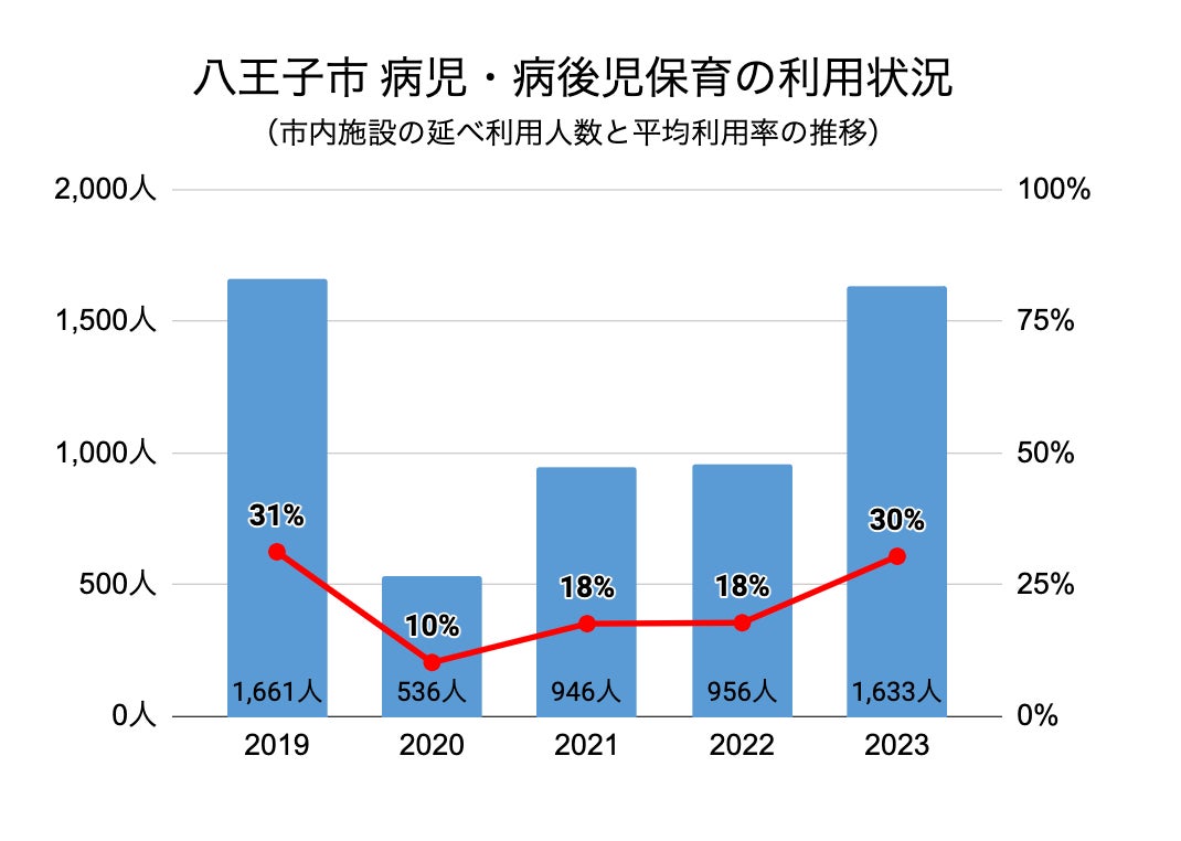 八王子市は、新型コロナウイルスの流行に伴い病児・病後児保育の利用者数が減少しましたが、施設の新設などの取り組みにより利用者数は回復しつつあります。今年度は委託先の病児保育室が1つ増えて5施設となりました。さらに今回、あずかるこちゃんが導入されることによって、病児保育事業の利便性の更なる向上と認知度の拡大が期待されています。
