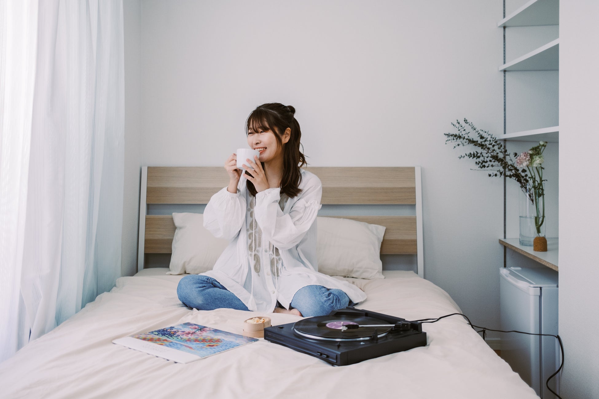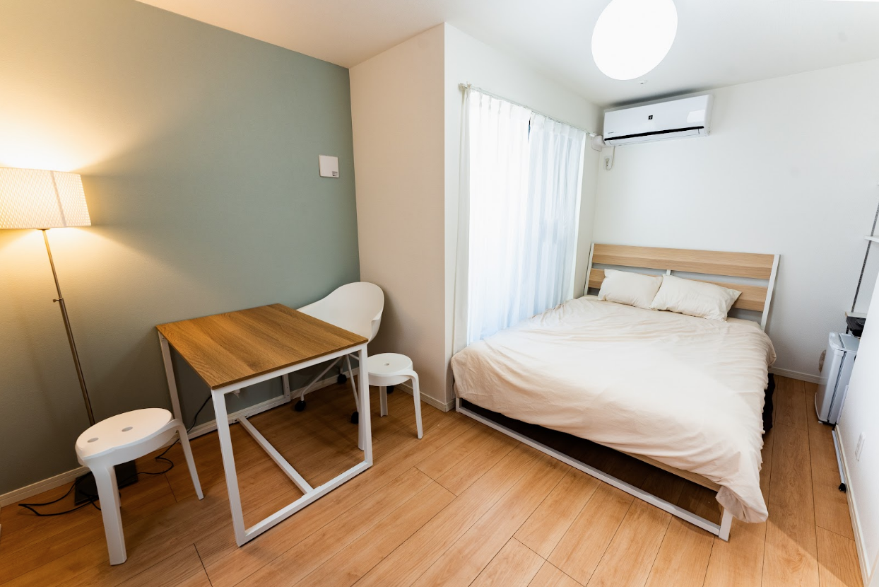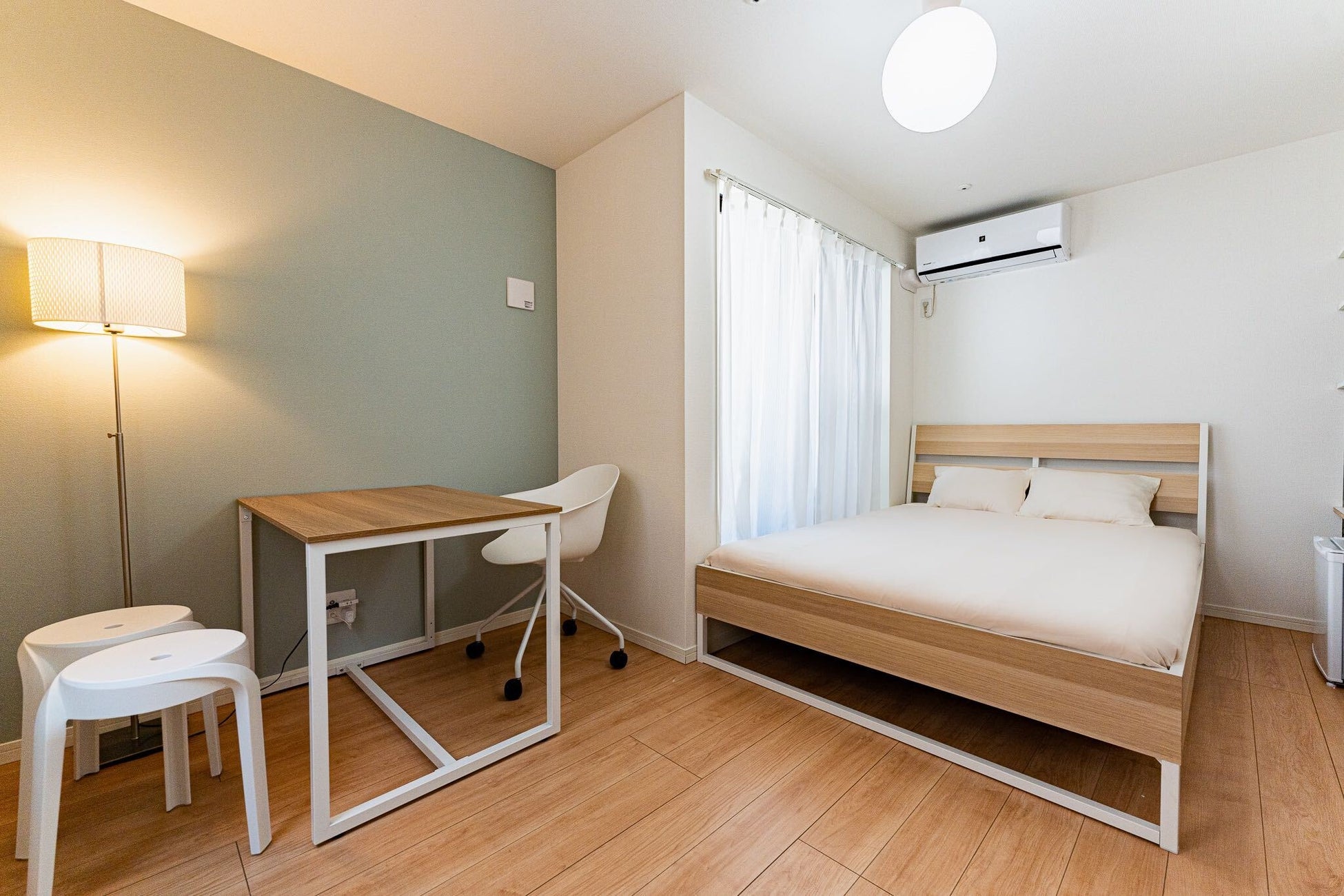 お部屋は、生活に必要な家具・家電、Wi-Fiが完備された、木の温もりを感じるワンルーム。日本人アーティスト「Evis Beats」のレコードを聴きながら、ほっと一息つける空間です。また、成田・羽田空港へ直行の押上駅へは徒歩9分。出張や旅行にも便利です。