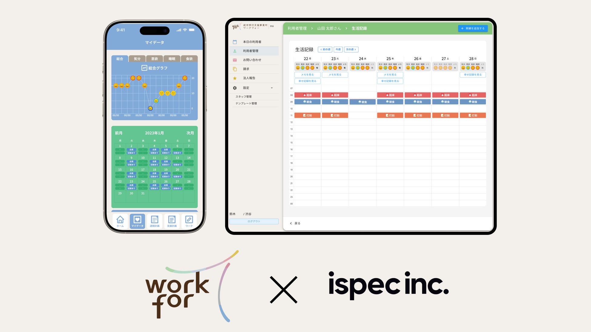 医療データの活用を見据えた事業を展開するispecと共同開発を行うことで、業務の効率化を図る基幹システムを導入し、より一層、利用者様に寄り添った支援の提供を目指しました。