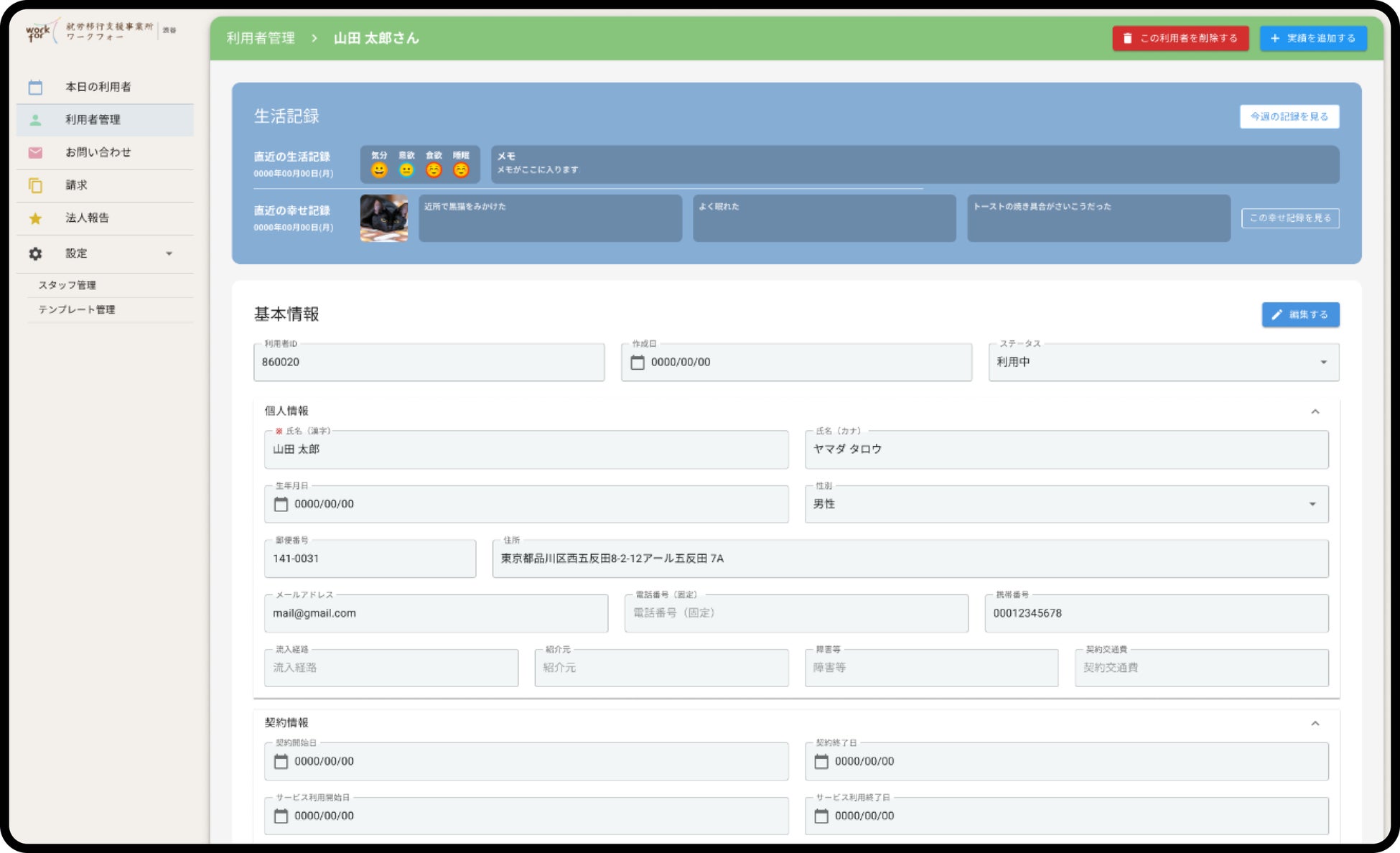 就労移行支援事業所では、利用者様の支援計画や利用実績を詳細に管理することが求められています。しかし、従来の紙やExcelを用いての管理方法では、文書やファイルが散在し、情報管理に多くの時間がかかるという課題がありました。