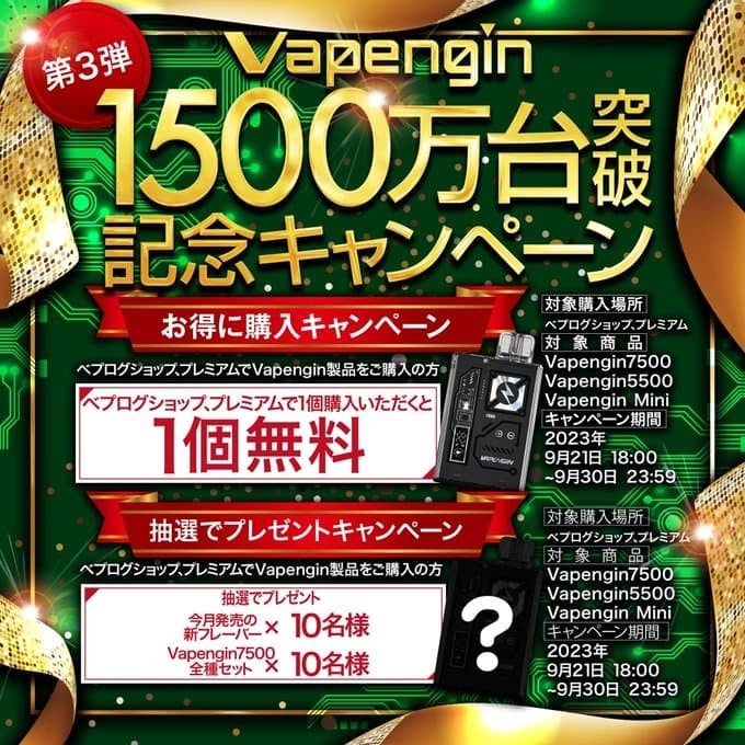 Vapengin1500万台突破記念キャンペーン第3弾の概要