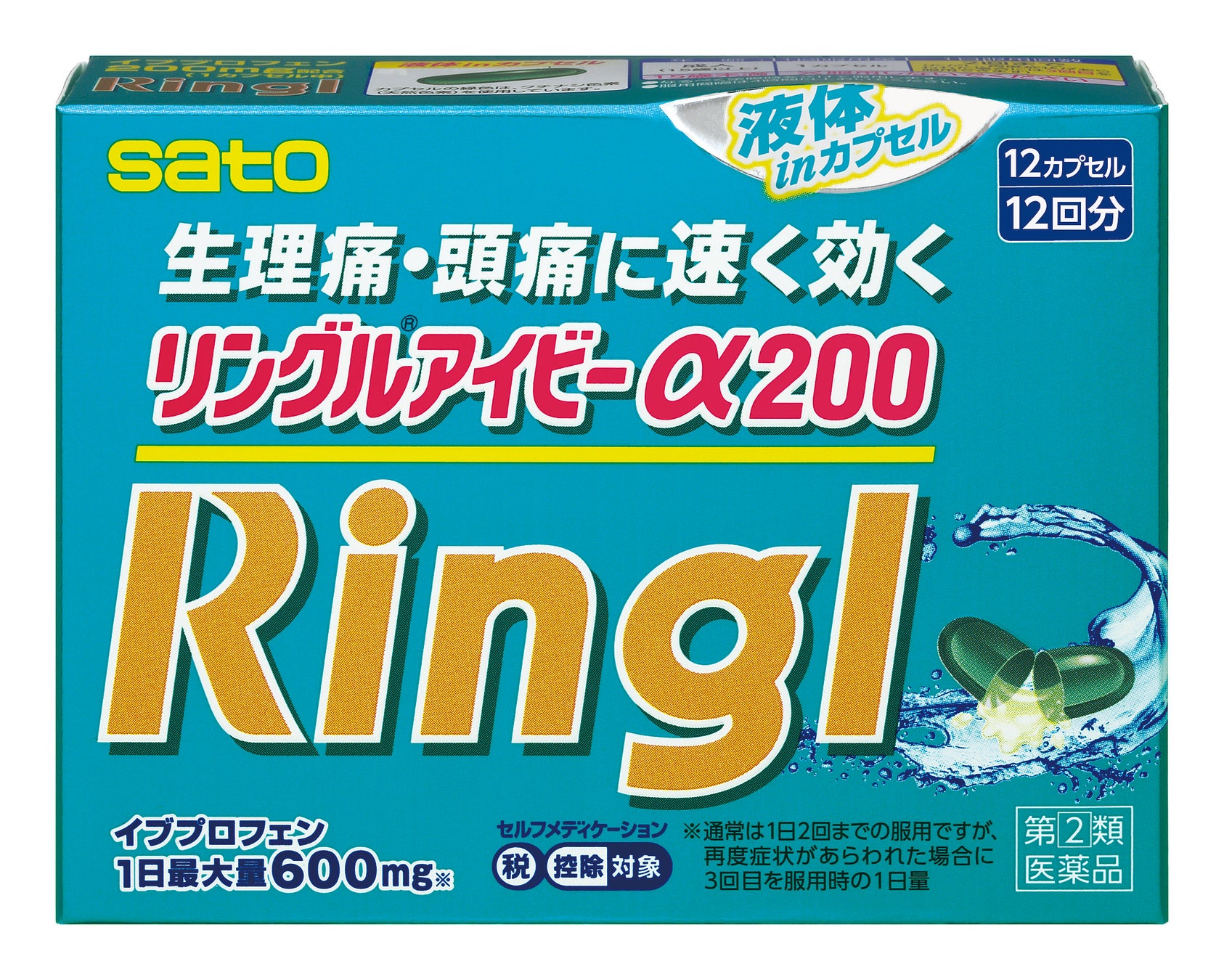 そして、リングルアイビーα200の特長である、有効成分イブプロフェンが液状に溶けた「液体inカプセル」を、映像とともに大きく表現。水に溶けにくいイブプロフェンをあらかじめ液体に溶かすことで、速く溶けることを伝えます。