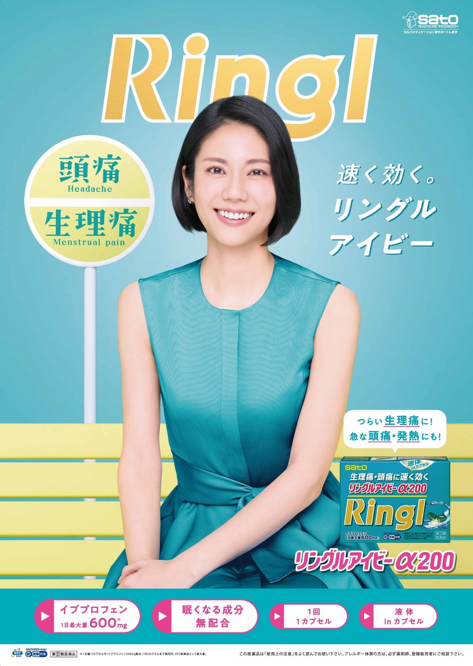 佐藤製薬株式会社(本社:東京都港区、社長:佐藤誠一)では、つらい頭痛・生理痛・発熱に速く効く、解熱鎮痛薬リングルシリーズの新ブランドキャラクターに松下奈緒さんを起用、『リングルアイビーα200』(指定第2類医薬品)の新TVCM『リングルバス』篇を6月2日(月)より、全国一斉にオンエアいたします。