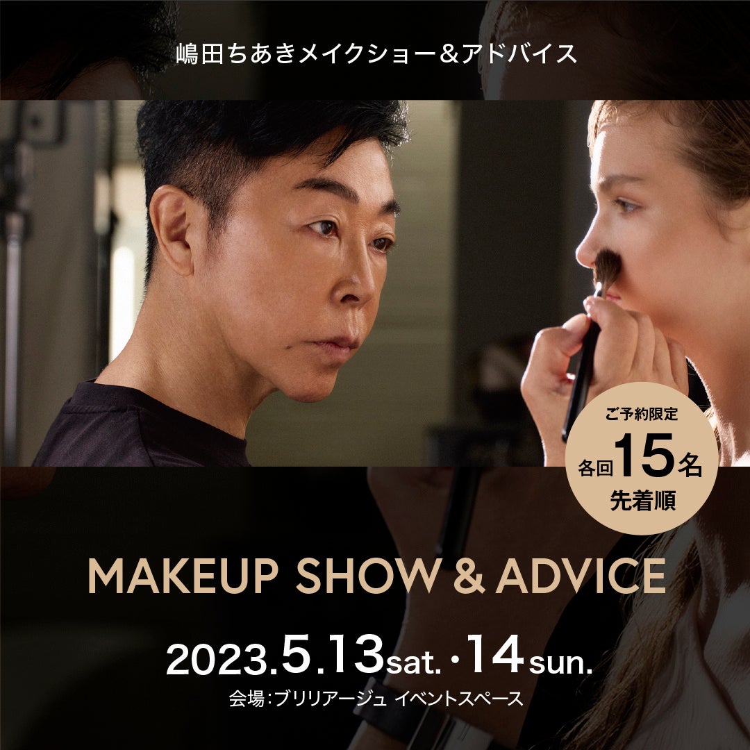 ブリリアージュブランドプロデューサー嶋田ちあきが新商品を使ったメイクショーと、参加者お一人ずつメイクアップアドバイスを行います。