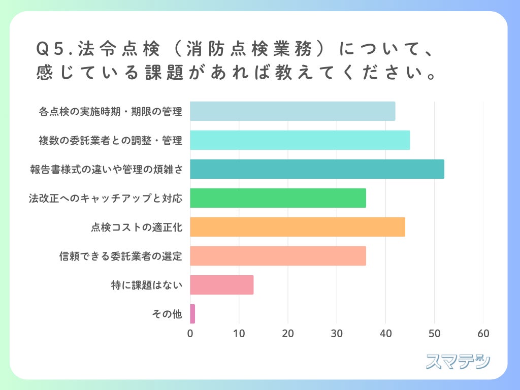 Q5. 法令点検(消防点検業務)について、感じている課題があれば教えてください。(複数回答)