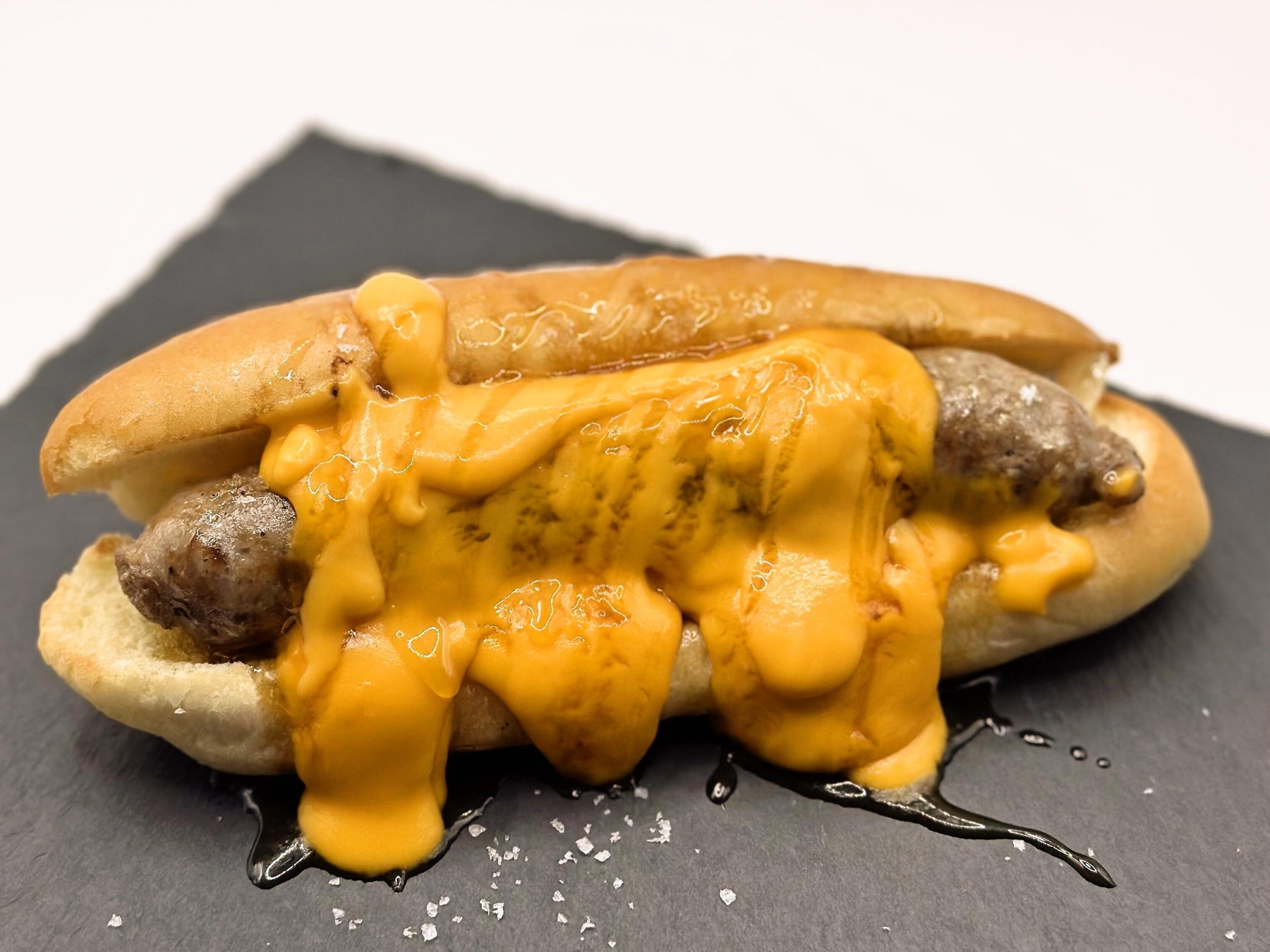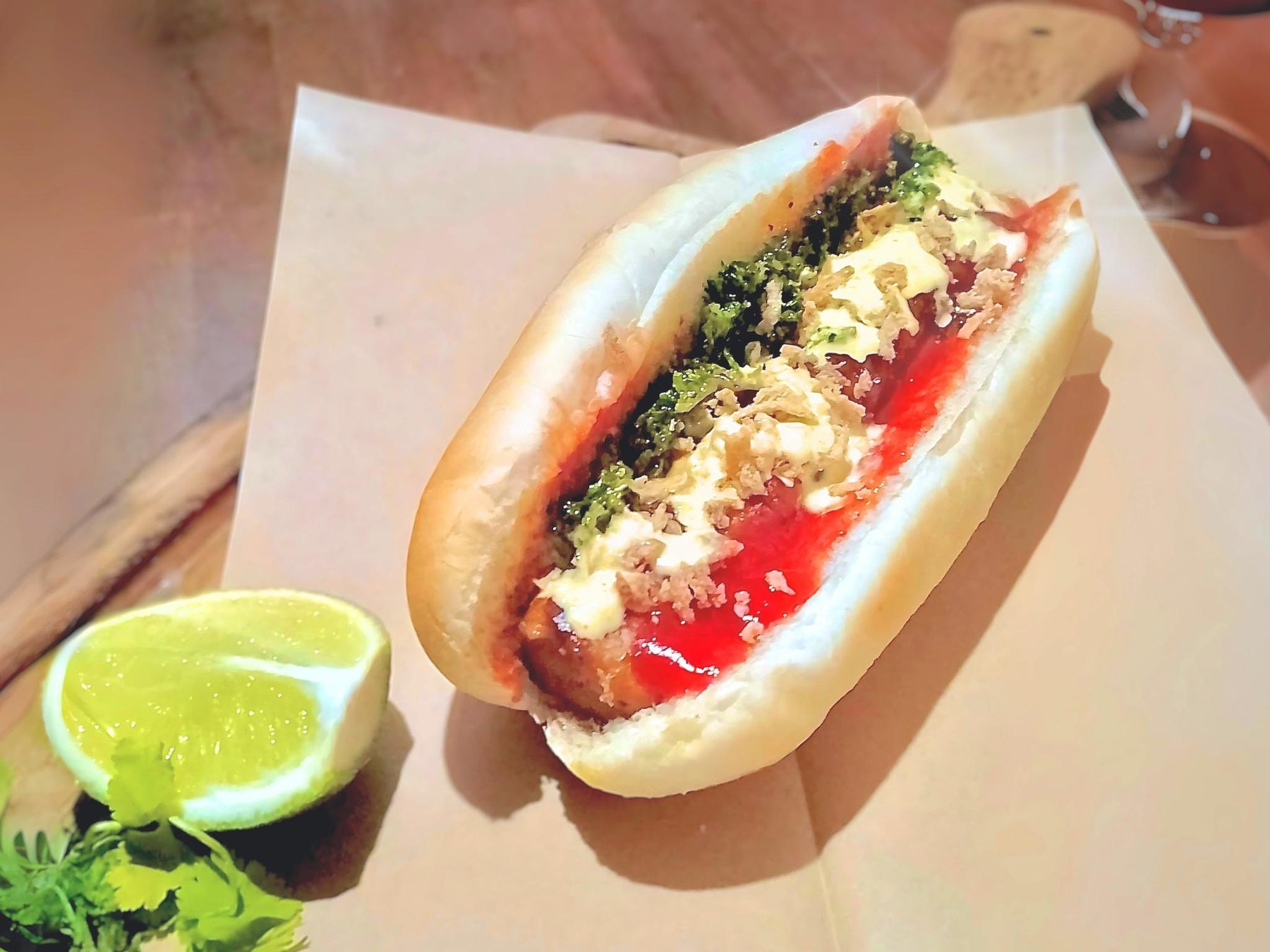 ジューシーで柔らかな皮なしポークリンクを使用した贅沢なホットドッグ。定番のケチャップとサクサクの玉ねぎを組み合わせました。ボリビア産の黄色唐辛子を使ったオリジナルピリ辛なチリマヨ、豊かなチミチュリソースをお楽しみください。