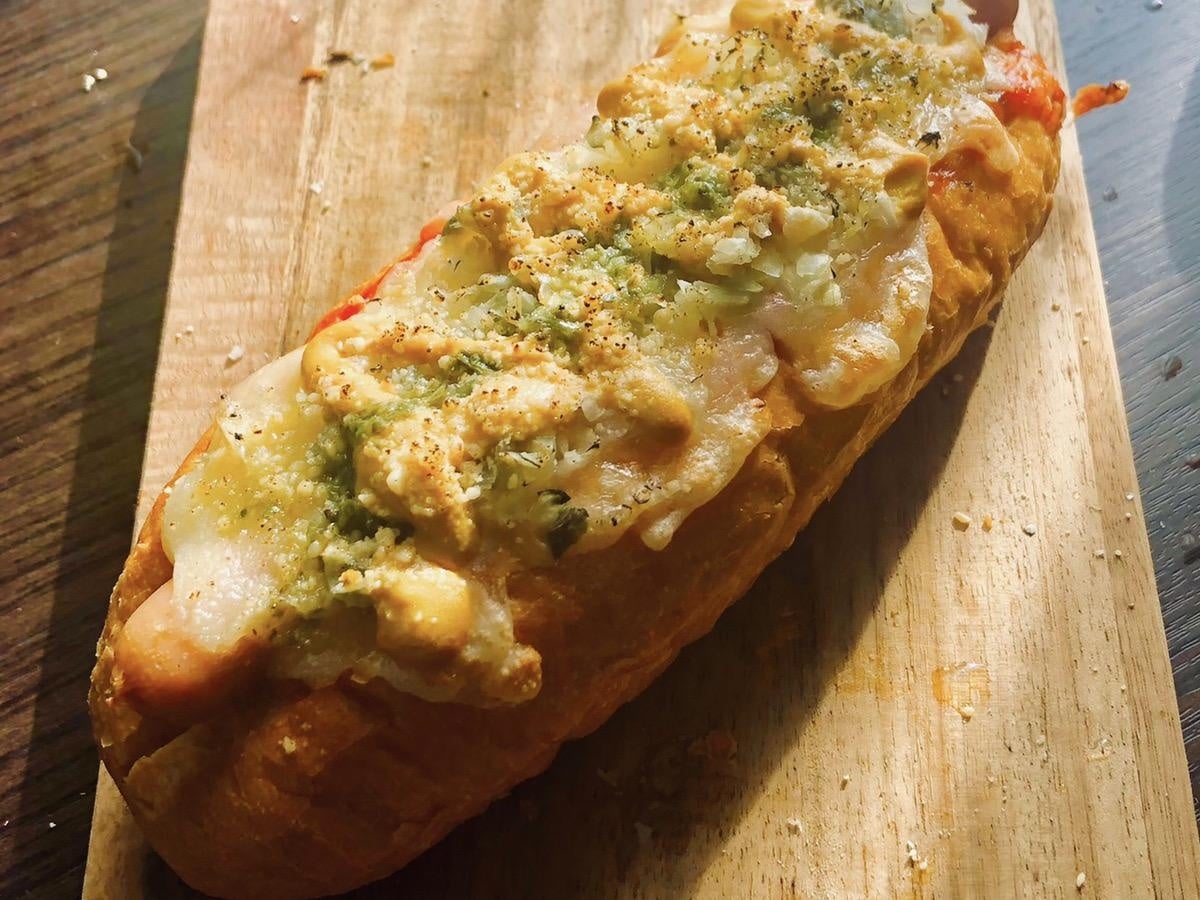 とろーりチーズとバジルが絶妙の相性!300℃のオーブンでギュッと焼き上げ、パンはサクっとフワッと、ソーセージはジューシーに仕上げました。シンプルですがオンリーワン!ステーション東京のオススメNo1です!