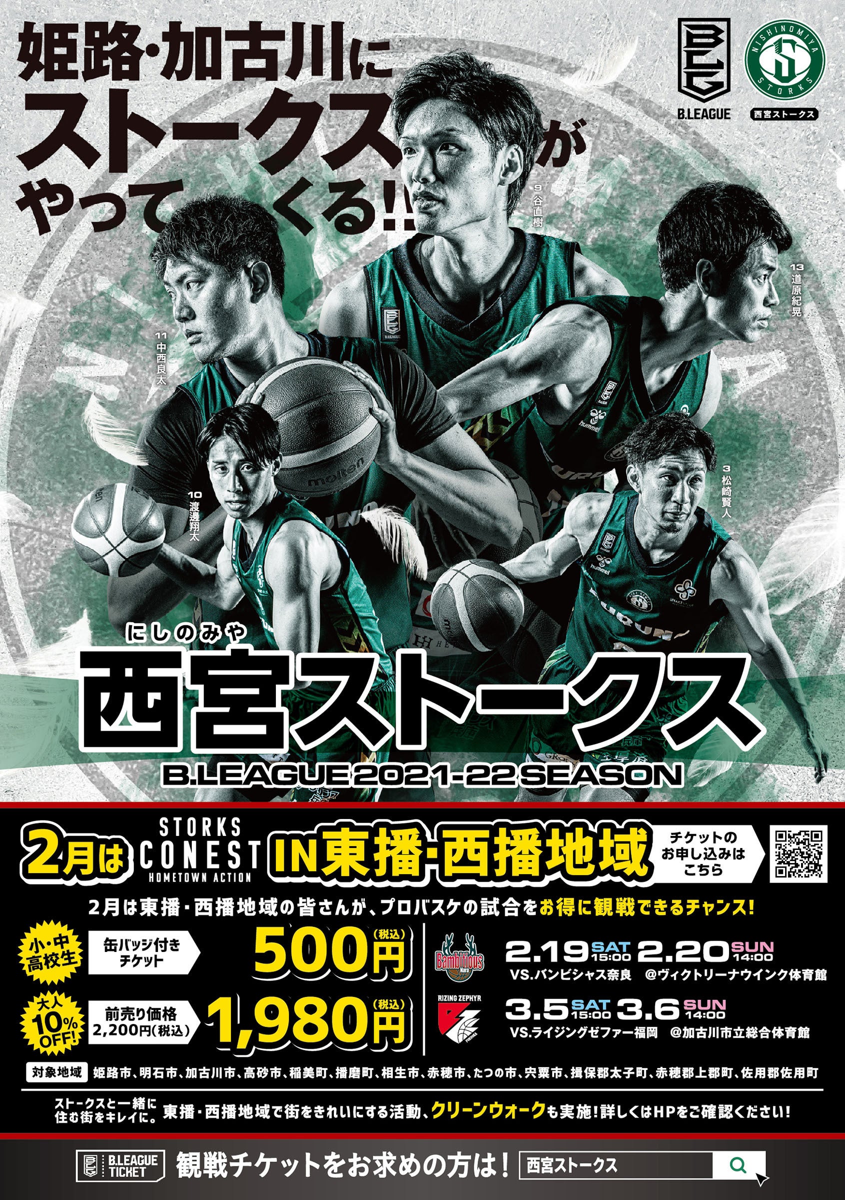 2月・3月のホームゲームは今シーズン最初で最後の姫路・加古川開催!東播・西播地域の優待企画を実施!