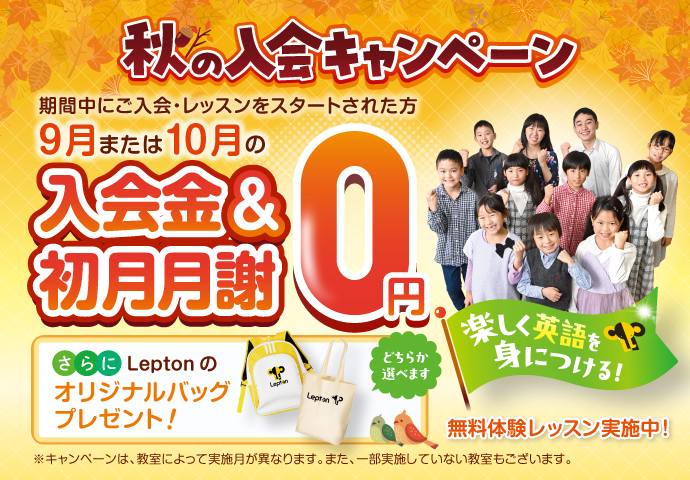 子ども英語教室Lepton(レプトン)入会金&9月または10月の月謝が“0円”になる『秋の入会キャンペーン』を実施!