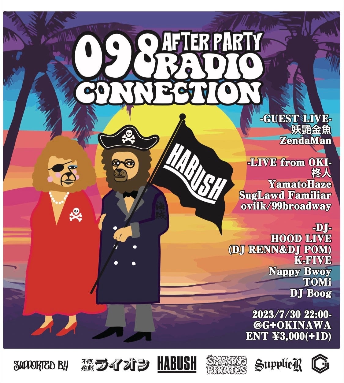 夜にはAfter Partyを@G+OKINAWAにて開催し、ゲストには沖縄出身のラッパーを中心に SugLaud Familiar、柊人、YamatoHaza、妖艶金魚、 etc… を招待し、Summer Campの夜を盛り上げます。