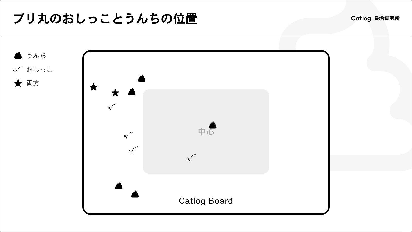 本日公開分のレポートでは、Catlog Boardのデータからわかる、猫様がトイレをする位置についてレポートしています。猫様のトイレスタイルはそれぞれ個性あふれるもの。社内の猫様メンバーの特徴について見てみました。2月23日には猫様のご飯事情に関するレポートを、2月24日には雌雄でのトイレ事情の違いについてのレポートを公開予定です。