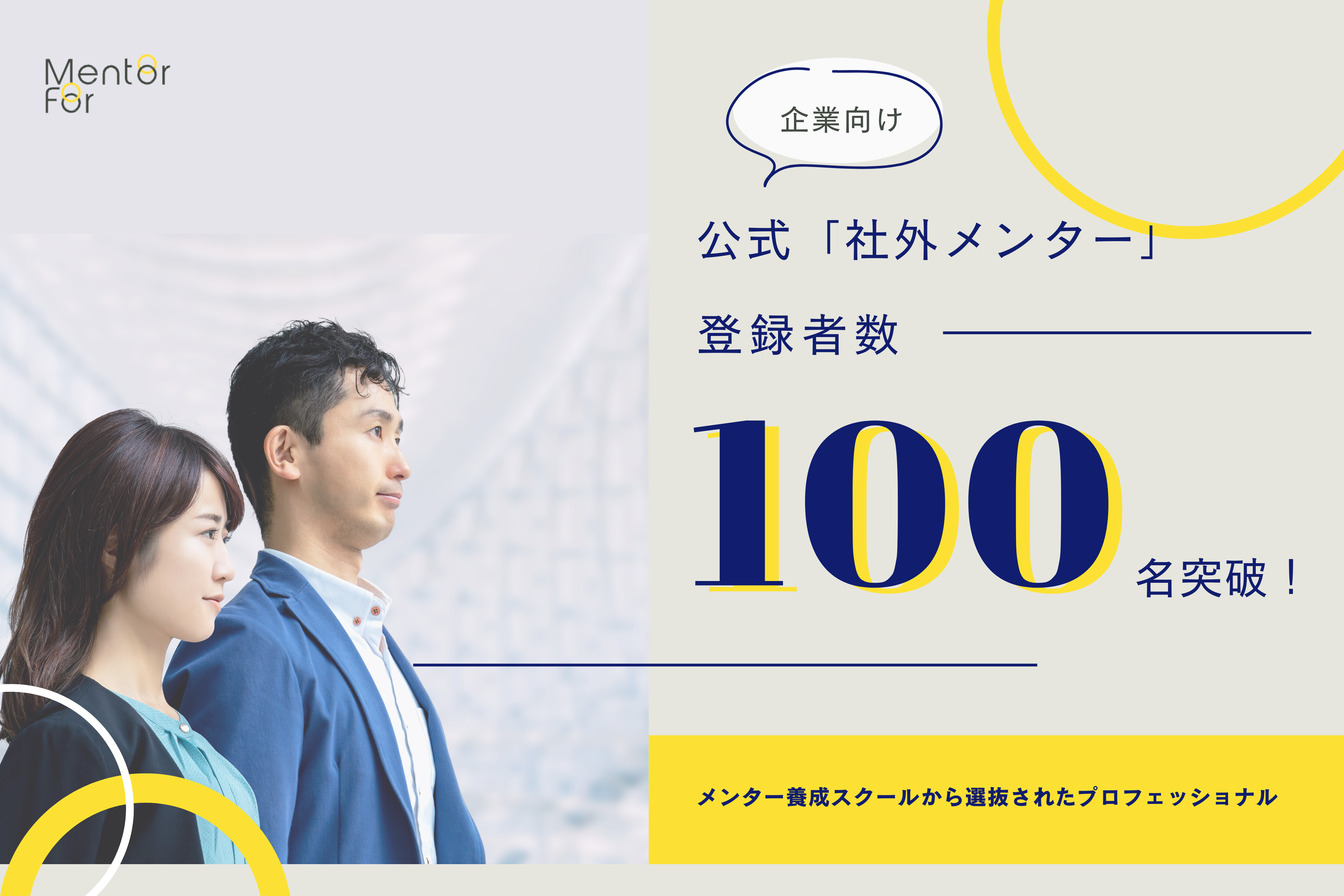 Mentor For、企業向け 公式「社外メンター」登録者数100名突破