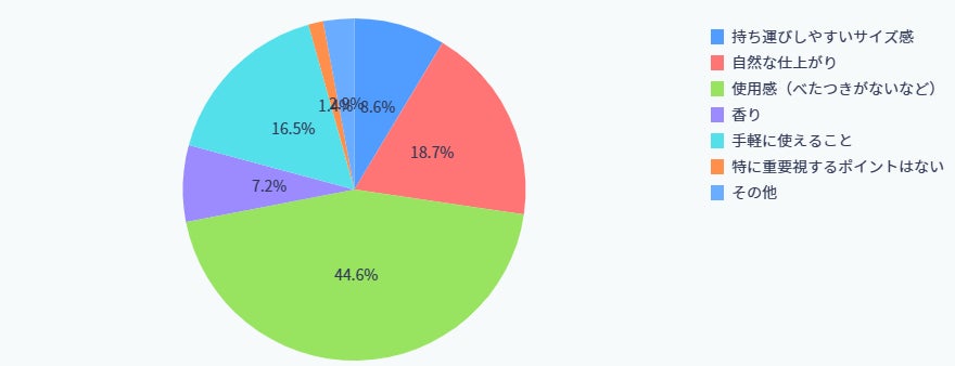 ・使用感の良さ(べたつかないなど)が最も重要(44.6%)。