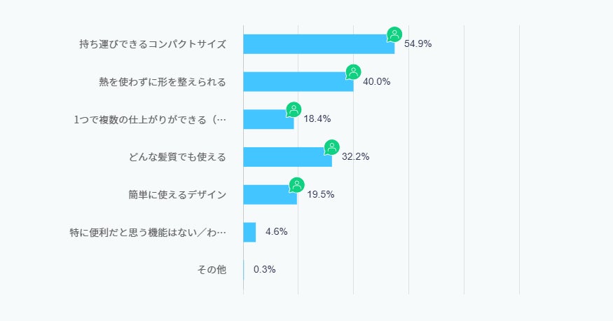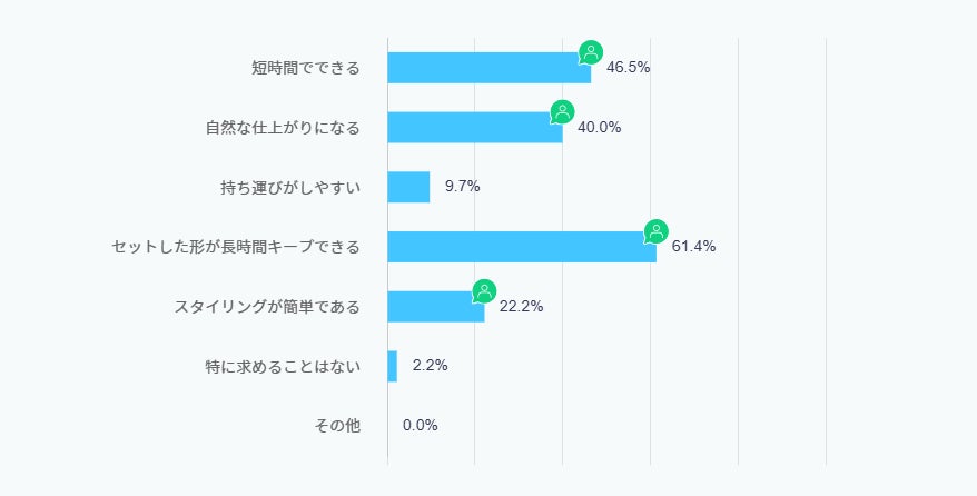 ・セットした形が「長時間キープできる(61.4%)」機能。