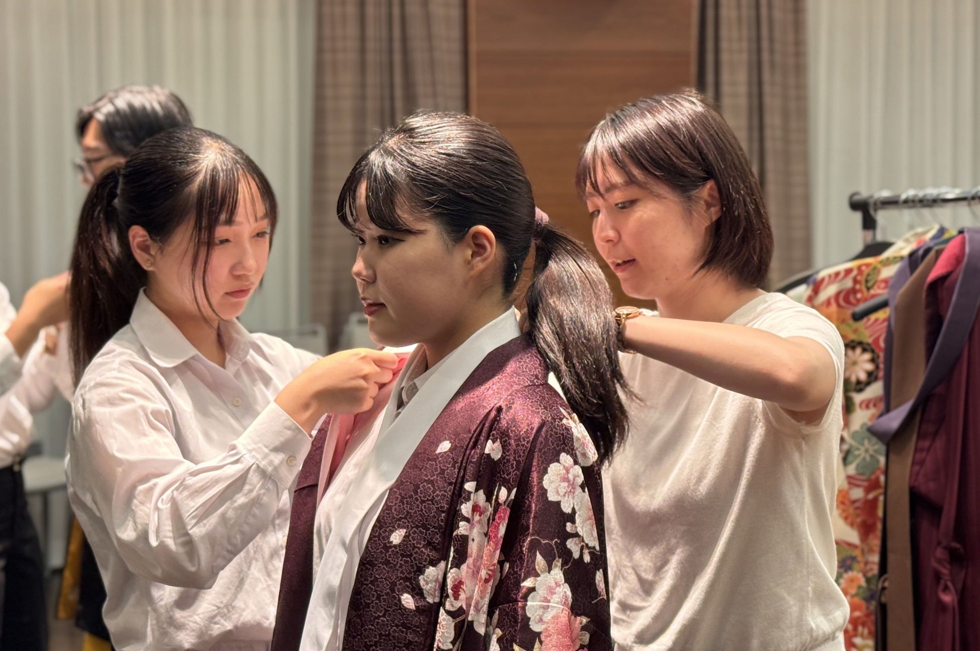 専門学校日本ホテルスクール(東京都中野区/校長:石塚 勉)は、2025年10月8日(水)~10日(金)の3日間、夜間部ブライダル科2年生による産学連携授業「卒業式袴展示会」を校内で開催しました。本展示会は、協力企業2社との連携により学生が主体で運営する、2016年度から続く本校独自の実践教育プログラムです。