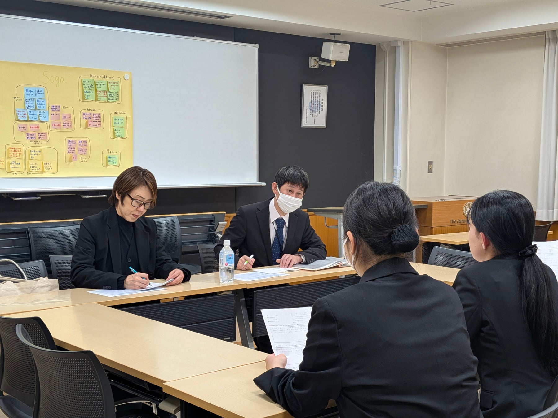今年度の展示会では、2社合計で 103組の契約 が成立し、売上は 約8,141,000円(前年比+2,090,000円) となり、平均単価も前年を上回る結果となりました。例年より高単価の商材提案が実現したことや、男性の利用が増加したことも特徴です。学生たちは売上目標を達成する過程で、実際の販売経験を通じて営業力や接客力を磨くことができ、展示会終了後にはフィードバック会で成果を振り返り、学びを整理しました。学生からは「実際に契約を結ぶ経験ができ、営業の難しさと達成感を得られた」「今回学んだことを卒業後の社会人生活で活かしたい」といった声が挙がりました。