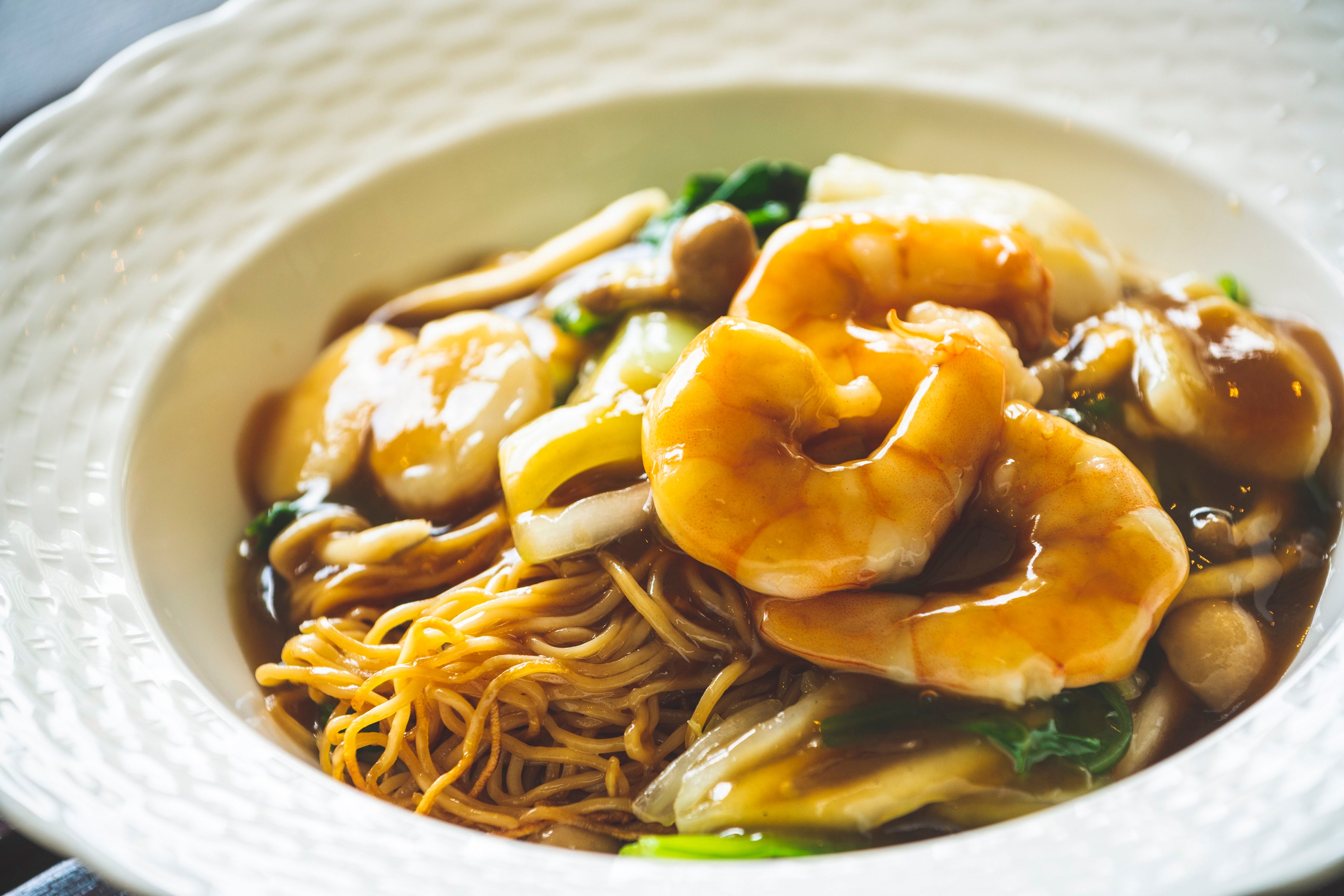 リピーターのみならず、スタッフからのリクエスト多数。2017年に惜しまれつつ閉店した中国料理「花梨」の中でも特に人気を博したメニュー「海鮮あんかけ焼きそば」が期間限定で登場です。海老や帆立、イカなどの海鮮がごろっと入って食べ応え十分。多くの万座ファンを魅了した伝統の味をご賞味ください。