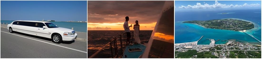 旅の始まりは、プライベートリムジンによる送迎から。ゆったりとした車内で寛ぎながら、約1時間の優雅なドライブへご案内します。プランのハイライトはシャンパーニュを楽しみながらのプライベートサンセットクルーズ、古宇利島上空へご案内するヘリコプター遊覧飛行、と3つのアクティビティをご用意しました。陸・海・空の三方から沖縄国定海浜公園の魅力をご堪能ください。