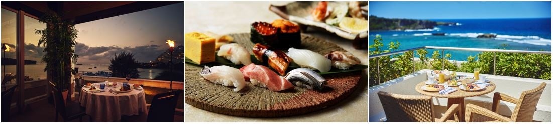 2日目のディナーには県産魚の握りを含む、板長厳選の寿司コース、ご朝食は広々としたお部屋のテラスで東シナ海の絶景を眺めながら優雅に、と贅沢なダイニングエクスペリエンスをご用意しました。その他、クラブインターコンチネンタルラウンジでは、季節の食材で創るアフタヌーンティーや、シャンパーニュをはじめ、豊富なドリンクセレクションが好評のイブニングカクテルをお楽しみいただけます。