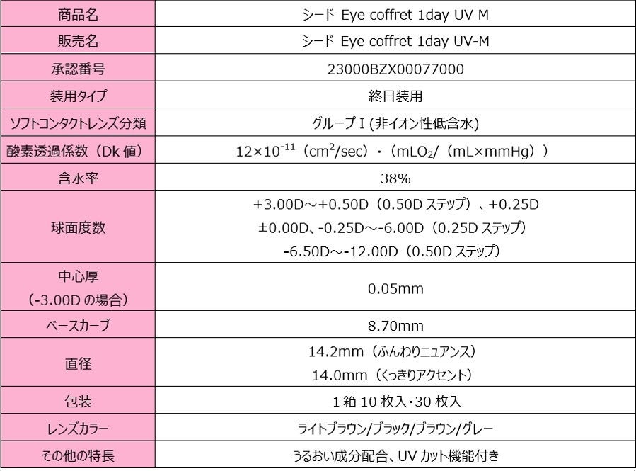 - シード Eye coffret 1day UV M 製品概要