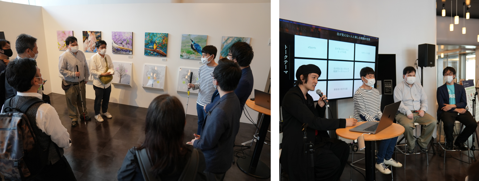 窪田は2022年4月22日(金)から4月24日(日)まで羽田イノベーションシティにて開催された自身での個展『題名のないAI絵画展』での試みを中心にトークを展開。「人間とAIが共創する世界」をテーマに、AIの技術を使って描かれた絵画作品を展示。一般観覧者は、絵画に題名をつけながら作品を鑑賞するなど、感性を刺激する仕掛けを楽しみました。